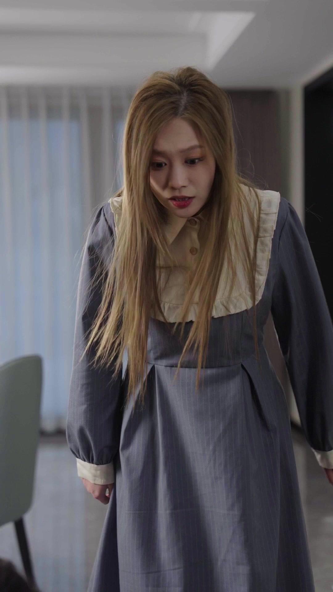 There’s a particular kind of horror that doesn’t come from jump scares or blood—it comes from watching someone realize they’re trapped in a narrative they didn’t write. In *Scandals in the Spotlight*, that horror unfolds across a gleaming tile floor, where every footstep echoes like a courtroom gavel, and every sigh carries the weight of unsaid truths. Lin Xiao doesn’t fall. She *settles*. Her descent is slow, deliberate, almost reverent—as if the floor itself is a confessional, and she’s finally ready to speak. Her dress, modest and vintage-inspired, contrasts sharply with the modern minimalism of the room: white cabinetry, geometric art, recessed lighting that casts no shadows, only exposure. She is the anomaly here—not because she’s out of place, but because she’s the only one refusing to perform.
