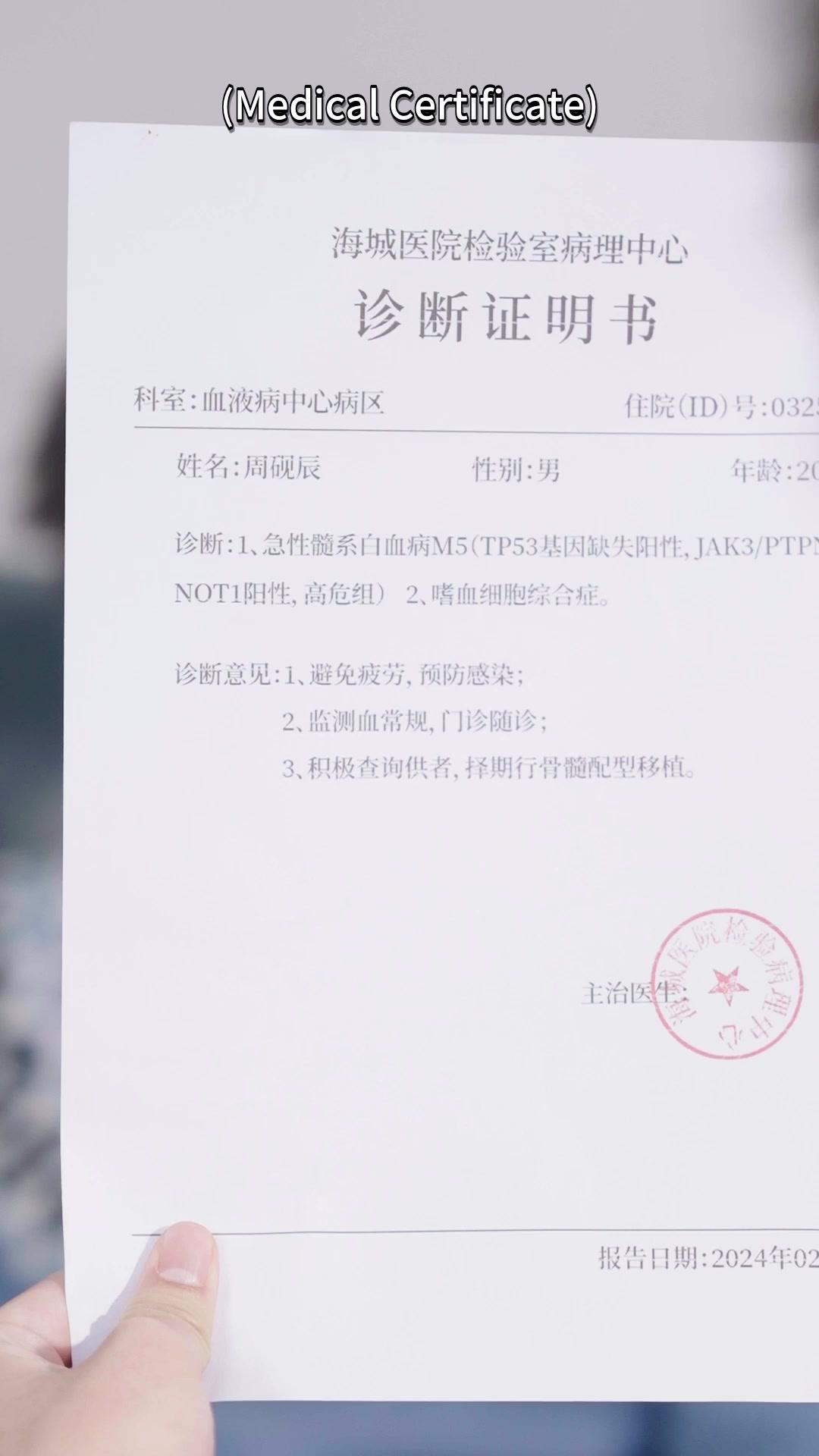 *Scandals in the Spotlight* opens not with sirens or hospital beeps, but with the rustle of paper—a medical certificate held aloft like evidence in a courtroom no one asked for. The diagnosis is clinical, precise, and chilling: Acute Myeloid Leukemia, high-risk category. The patient, Zhou Weichen, is twenty years old. He wears a blue Fair Isle sweater—cozy, nostalgic, the kind you’d wear on a winter morning sipping hot cocoa, not while receiving news that could rewrite the rest of your life. His posture is slumped but not broken; his eyes, when they lift to meet Lin Zeyu’s, hold a strange mixture of exhaustion and resolve. This isn’t the first time he’s faced uncertainty. It’s just the first time it’s wearing a lab coat.