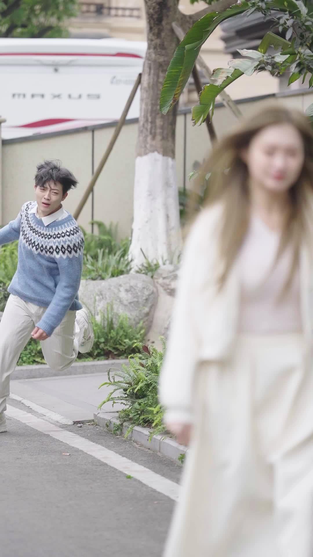 There’s a particular kind of horror that doesn’t come with screams or sirens—it arrives in the quiet aftermath of a conversation that should have happened years ago. In Scandals in the Spotlight, that horror unfolds not in a dim alley or a rain-slicked rooftop, but on a sunlit residential street lined with manicured shrubs and stone pillars, where the only sound is the rustle of Chen Xiao’s cream skirt against her thighs as she walks away from Li Wei. He chases her—not with speed, but with desperation, his sneakers squeaking faintly on the asphalt like a child chasing a runaway balloon. His sweater, that iconic blue-and-white Fair Isle pattern, seems almost mocking in its innocence, a visual lie draped over a man who’s just realized he’s been living inside a fiction of his own making.