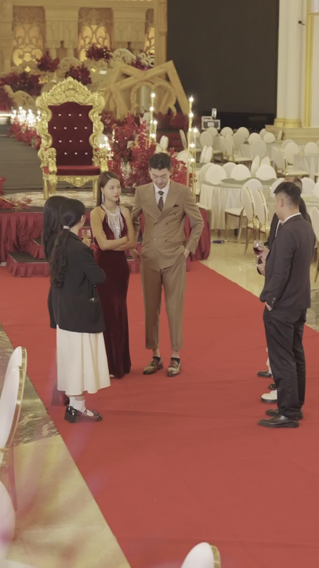 In the opulent ballroom of what appears to be a high-society gala—gilded arches, crystal chandeliers, and a throne-like chair draped in crimson velvet—the air hums with unspoken history. This is not just a party; it’s a stage where every glance, every sip of wine, every shift in posture carries the weight of past betrayals and present calculations. At the center of this charged tableau stands Lin Zhi, the man in the tan double-breasted suit, his gold-rimmed spectacles catching the ambient glow like tiny mirrors reflecting hidden intentions. His tie—a paisley silk number secured by a diamond-studded tie clip—screams old money, but his smile? That’s something else entirely. It flickers between charm and condescension, as if he’s rehearsing lines for a role he’s already played too many times. He speaks with measured cadence, hands tucked into pockets or gesturing with theatrical precision, never quite touching anyone, yet somehow always *reaching*—toward control, toward narrative dominance. The camera lingers on his expressions: a smirk when he glances at Su Yan, the woman in the deep burgundy velvet gown whose jewelry alone could fund a small startup. Her statement necklace, a cascade of rhinestones that shimmer with each breath, isn’t just adornment—it’s armor. And those earrings? Long, dangling, catching light like warning flares. When she crosses her arms, it’s not defiance; it’s containment. She’s holding herself together while the world around her tries to rewrite her story. Her lips move—sometimes smiling, sometimes pursing, sometimes forming words that never reach the microphone—but her eyes tell the real tale: they dart, they narrow, they soften, then harden again. She’s listening, yes, but more importantly, she’s *assessing*. Every word Lin Zhi utters is being weighed against memory, against evidence, against the ghost of their shared past. Meanwhile, entering like a quiet storm, is Xiao Wei—the woman in the white sequined halter dress, her hair coiled in an elegant updo, pearl-and-crystal earrings whispering with every turn of her head. Her entrance is deliberate, unhurried, almost ritualistic. She walks the red carpet not as a guest, but as a claimant. Her hands are clasped before her, posture poised, gaze steady—not aggressive, but unshakable. When Lin Zhi turns to greet her, his expression shifts subtly: the practiced ease cracks, just for a frame. He raises a hand—not to shake, but to gesture, perhaps to interrupt, perhaps to placate. But Xiao Wei doesn’t flinch. She meets his eyes, and for a moment, the background noise fades. This is the core tension of *The Billionaire Ex-Wife Strikes Back*: not who said what, but who *remembers* what, and who gets to decide how it’s told. The other guests—two younger women in chic black and cream ensembles, one holding a glass of red wine like a shield—watch from the periphery, their expressions shifting between amusement, concern, and outright fascination. They’re not extras; they’re witnesses, complicit in the drama simply by being present. One whispers to the other, lips moving silently, while the second nods, eyes wide, as if confirming a rumor she’s been waiting years to hear. Their presence underscores the social ecosystem at play: gossip is currency here, and tonight, the market is volatile. What makes *The Billionaire Ex-Wife Strikes Back* so compelling isn’t the grand setting or the designer attire—it’s the micro-expressions, the pauses between sentences, the way Lin Zhi’s fingers twitch when Xiao Wei speaks, or how Su Yan’s jaw tightens when the conversation pivots toward ‘the settlement’. There’s no shouting, no dramatic slaps—just the slow burn of emotional detonation deferred. The lighting helps: warm, golden, but with shadows pooling in corners, suggesting secrets still buried. The red carpet underfoot isn’t just decorative; it’s symbolic—a path walked once in joy, now retraced in ambiguity. When Lin Zhi laughs, it’s too loud, too sharp, a reflexive defense mechanism. When Xiao Wei smiles, it’s gentle, almost maternal, which somehow feels more dangerous than anger. And Su Yan? She watches them both, calculating angles, weighing alliances, her crossed arms a physical manifestation of emotional boundaries she refuses to let erode. The scene builds not through dialogue alone, but through rhythm: the cut from Lin Zhi’s confident stride to Xiao Wei’s serene approach, the lingering close-up on Su Yan’s lips as she forms a single syllable—‘Really?’—that hangs in the air like smoke. This is elite drama stripped bare: no villains, no heroes, just people who loved, lost, and now must navigate the wreckage with grace, guile, or grit. *The Billionaire Ex-Wife Strikes Back* doesn’t rely on exposition; it trusts the audience to read the room—and the room is screaming. Every detail matters: the way Lin Zhi’s pocket square matches his tie’s undertones, the subtle fraying at the hem of Su Yan’s gown (a sign of rushed preparation?), the fact that Xiao Wei wears no ring on her left hand, yet her right hand rests lightly over her heart as she speaks. These aren’t accidents; they’re narrative breadcrumbs. And the most chilling moment? When Lin Zhi leans in, ostensibly to whisper something to Xiao Wei, and for three full seconds, the camera holds on Su Yan’s face—her pupils dilating, her breath catching, her fingers tightening on her own forearm. She doesn’t look away. She *watches*. Because in this world, silence isn’t empty—it’s loaded. *The Billionaire Ex-Wife Strikes Back* understands that power isn’t seized in boardrooms; it’s reclaimed in ballrooms, one calibrated glance at a time. And as the scene fades, we’re left not with resolution, but with anticipation: Who will speak next? Who will blink first? And most importantly—who gets to walk away with the truth?