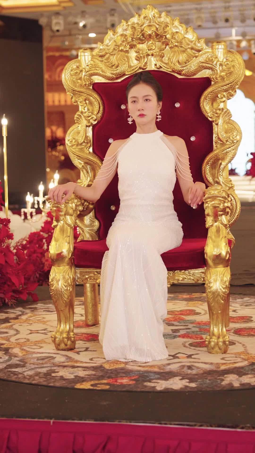 There’s a moment—just three seconds, maybe less—in *The Billionaire Ex-Wife Strikes Back* where time seems to hold its breath. Lin Xiao sits motionless on the dragon-throned chair, her white gown shimmering under the warm glow of candelabras, while Jiang Mei stands a few feet away, arms crossed, lips parted mid-sentence, eyes wide with something between shock and glee. Between them, the red carpet stretches like a wound. And in that silence, you can hear the entire history of their entanglement—not in dialogue, but in the way Lin Xiao’s fingers twitch, just once, against the armrest’s gilded lion head. That’s the magic of this series: it doesn’t tell you the backstory. It makes you *feel* it in the pauses.