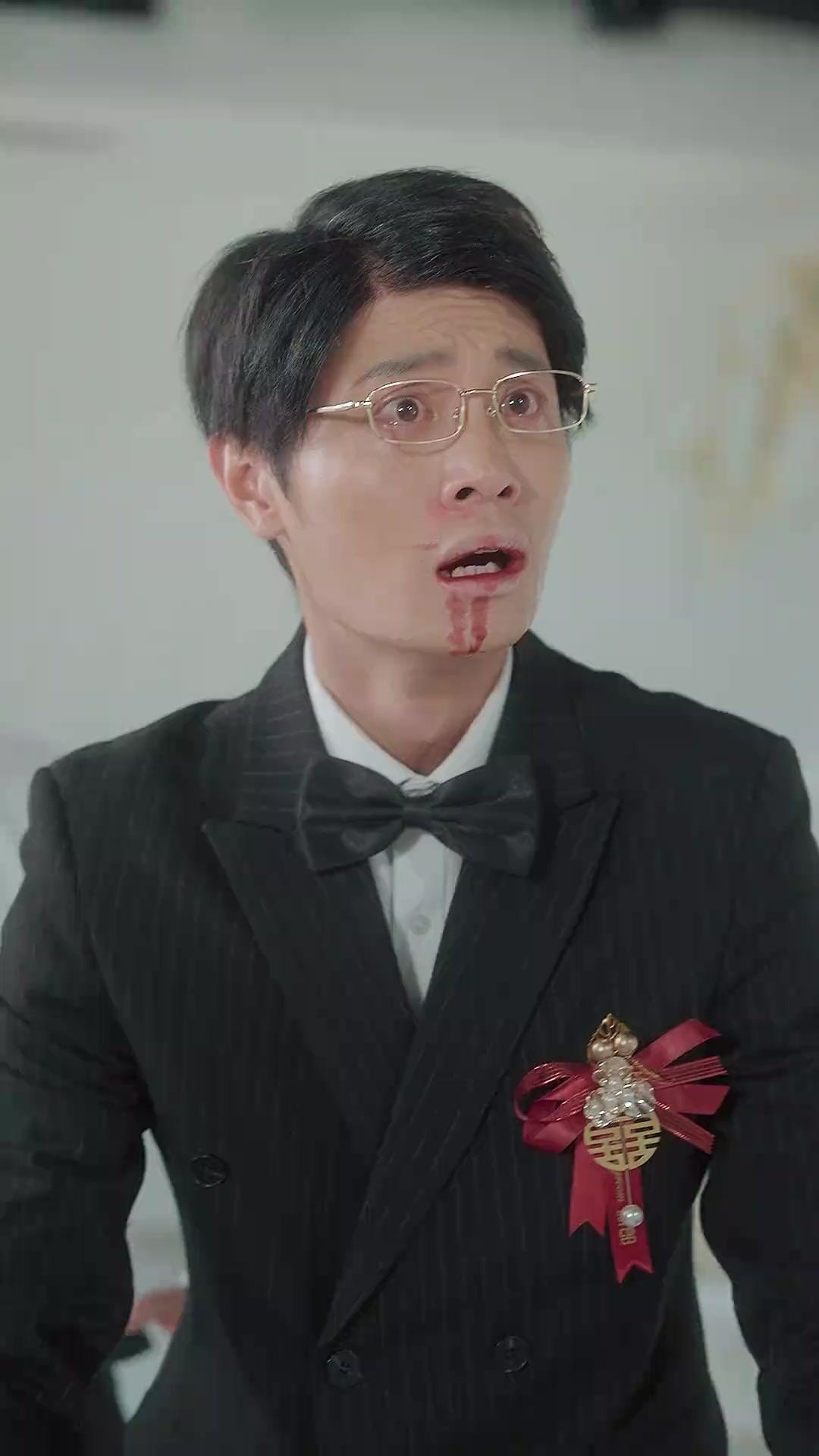 In *Devotion for Betrayal*, the groom’s trembling lips and blood-streaked chin aren’t just makeup—they’re emotional landmines. The bride’s shifting gaze—from pity to quiet triumph—says more than any dialogue. That floral backdrop? A cruel contrast to the raw tension. Every guest’s frozen face tells a different story. 🌹 #WeddingGoneWrong