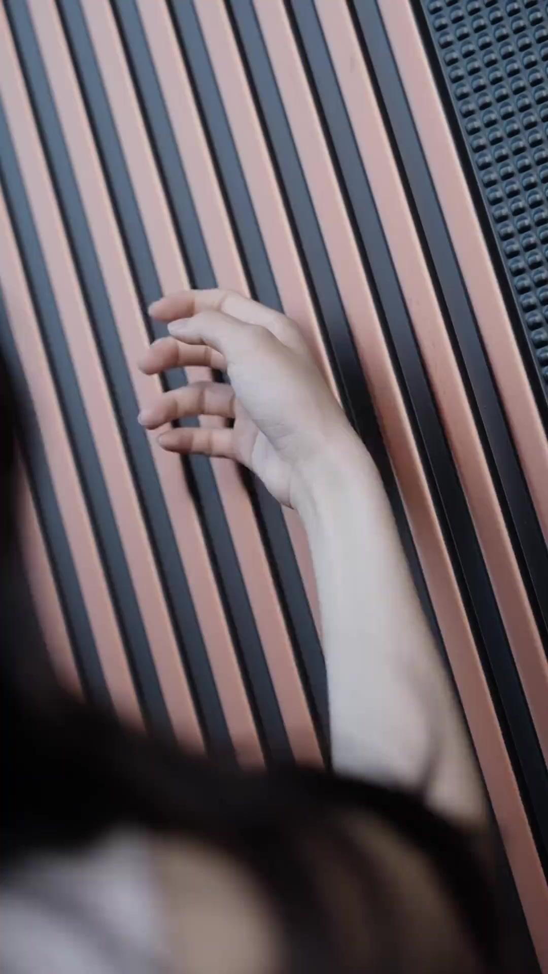 That copper-striped door isn’t just an entrance—it’s a threshold between worlds. Her hesitant touch, his calm hold… *From Outcast to CEO's Heart* nails tension in micro-gestures. The way she crosses her arms? Not defiance—fear masked as control. 🌿 #ShortFilmVibes