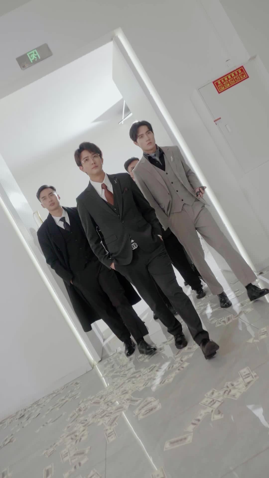 Let’s talk about the kneeling scene in *The Double Life of My Ex*—not as a moment of humiliation, but as a tactical maneuver disguised as obeisance. From the first frame, the setting screams ‘high-stakes social theater’: white walls, recessed lighting, emergency exit signs glowing green like ironic punctuation marks. The floor is a mosaic of hundred-dollar bills—not torn, not crumpled, but carefully strewn, as if someone had tossed them with artistic intent. This isn’t accidental wealth; it’s curated abundance. And into this space walk Li Zeyu, Chen Wei, and Zhang Hao—three men whose fashion choices alone tell a story. Li Zeyu’s suit is tailored to perfection, his glasses thin-framed, his demeanor calm to the point of unnerving. Chen Wei’s beige three-piece is softer, but the black-and-white paisley scarf and silver feather brooch whisper rebellion beneath the polish. Zhang Hao’s long coat and vest combo reads ‘old money with modern menace,’ especially with those sunglasses-wearing lieutenants trailing like shadows.