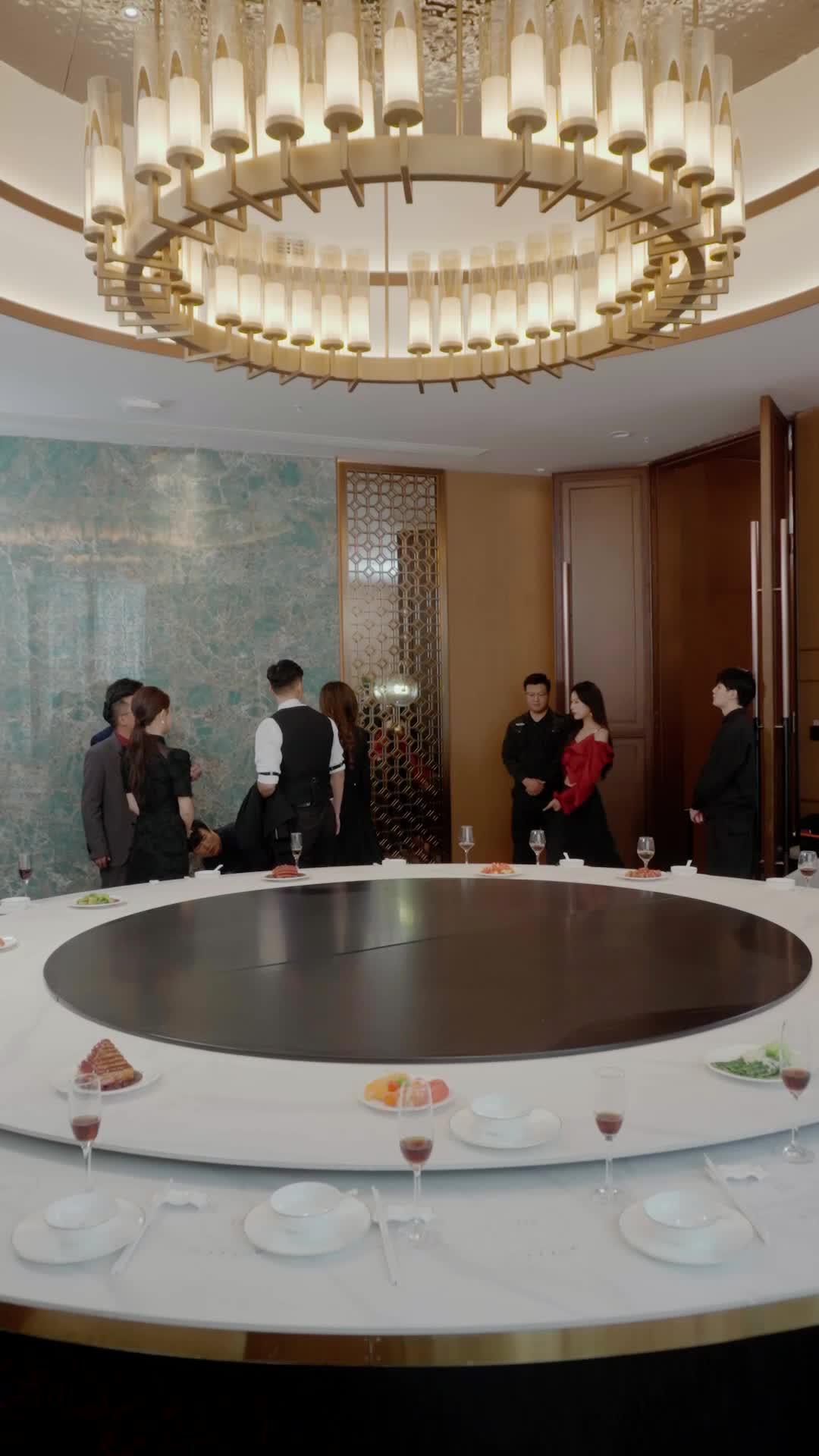The environment amplifies everything. The marble wall behind them isn’t just decorative—it’s cold, impersonal, reflecting light without warmth. The circular table isn’t inviting; it’s isolating. Everyone is equidistant from the center, yet no one dares sit there. The center is empty. Symbolic? Absolutely. The void where truth should reside. The chandelier above doesn’t cast light evenly—it creates pools of illumination and shadow, and the characters instinctively move in and out of those zones, as if aware of how visibility affects perception. When Lin Xiao steps into a brighter patch, her features sharpen, her resolve hardens. When Liu Wei retreats into shadow, his arguments lose conviction. Light isn’t just illumination here; it’s judgment.