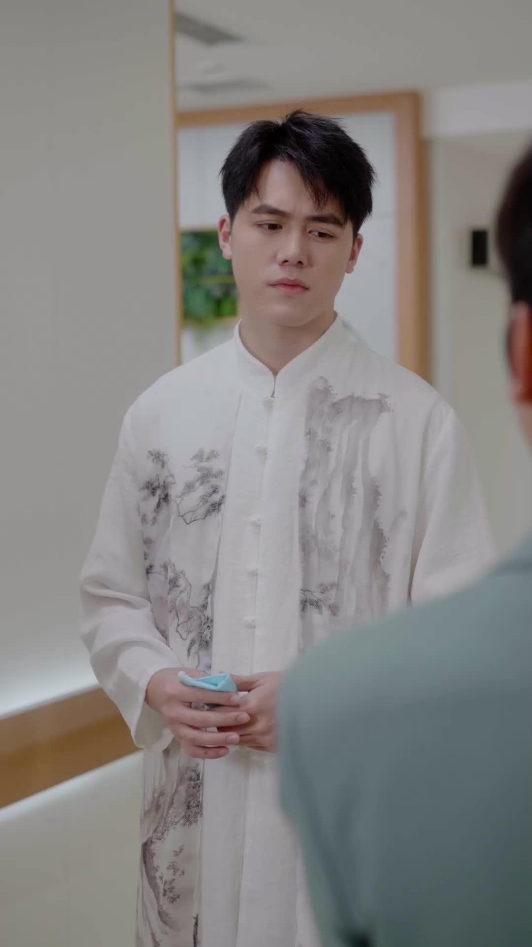 In a corridor bathed in soft, clinical light—white walls, recessed ceiling fixtures, and the faint hum of air conditioning—the tension doesn’t come from explosions or shouting. It comes from silence, from a folded blue handkerchief held too tightly, from the way Lin Zeyu’s eyes flicker between disbelief and resignation as he stands facing Chen Wei, who gestures with theatrical flourish, palms open like a priest delivering benediction. This isn’t just a hallway; it’s a stage where identity is being renegotiated in real time. The Double Life of My Ex thrives not on grand reveals but on micro-expressions—the slight tremor in Su Rui’s fingers as she clutches her crystal-embellished clutch, the way her smile tightens at the corners when Lin Zeyu turns his back, the subtle shift in posture when Xiao Yan steps forward, her emerald velvet dress catching the light like liquid envy. Each character wears their role like armor: Lin Zeyu in his ink-wash mountain-and-river tunic, a garment that whispers tradition, restraint, quiet dignity—but also concealment. His white trousers and slippers suggest comfort, perhaps even detachment, yet his grip on that handkerchief betrays something raw beneath the surface. Chen Wei, in his mint-green suit and diagonally striped tie, is all performance. His glasses catch the light like lenses focusing on a target; his hands move with practiced precision, framing arguments, inviting agreement, feigning humility—all while his mouth forms words that never quite land with sincerity. He’s not lying outright; he’s *curating* truth, editing reality to suit the narrative he wants this group to believe. And then there’s Su Rui—golden, radiant, draped in pleated metallic fabric that shimmers with every breath. She doesn’t speak much in these frames, but her presence dominates. Her brooch, a stylized phoenix pinned near her collarbone, isn’t just decoration; it’s symbolism. A rebirth. A claim. When she finally reaches for Lin Zeyu’s wrist—not his hand, not his arm, but his *wrist*, a gesture both intimate and possessive—it’s less about affection and more about anchoring him to a version of himself he may no longer recognize. The sparks that flare around them in frame 76? Not CGI fluff. They’re visual metaphors for the emotional detonation happening silently in the space between heartbeats. The Double Life of My Ex understands that the most dangerous lies aren’t spoken—they’re worn, carried, performed. Lin Zeyu’s stillness isn’t passivity; it’s calculation. He listens, he blinks slowly, he exhales through his nose—each motion calibrated. He knows Chen Wei is constructing a story where he’s the benevolent mediator, Su Rui the grateful beneficiary, and Xiao Yan the supportive friend. But Lin Zeyu remembers the nights he stayed up translating ancient medical texts while Su Rui scrolled through luxury boutiques, the way Xiao Yan used to bring him herbal tea after late shifts, the silence that grew between them like moss on stone. Now, standing here, he’s not just confronting people—he’s confronting timelines. The past he thought was buried is walking toward him in sequins and satin, smiling like she’s already won. What’s chilling isn’t the confrontation itself; it’s how *familiar* it feels. We’ve all been Lin Zeyu—standing in a brightly lit corridor, realizing the person you loved didn’t vanish; they just rewrote their biography without sending you the update. The show’s genius lies in its refusal to villainize. Chen Wei isn’t evil; he’s *useful*. Su Rui isn’t cruel; she’s *strategic*. Xiao Yan isn’t naive; she’s *waiting*. And Lin Zeyu? He’s the only one still trying to reconcile the man he was with the man he’s expected to become. When he finally speaks—his voice low, measured, almost apologetic—the weight of years hangs in the air. He doesn’t accuse. He *recalls*. That’s the true horror of The Double Life of My Ex: the realization that memory is the last frontier of authenticity, and even that can be contested. The hallway stretches behind them, doors closed, signs unreadable, emergency lights glowing red like distant warnings. No one moves to leave. Because leaving would mean accepting the new script. And none of them are ready to sign.