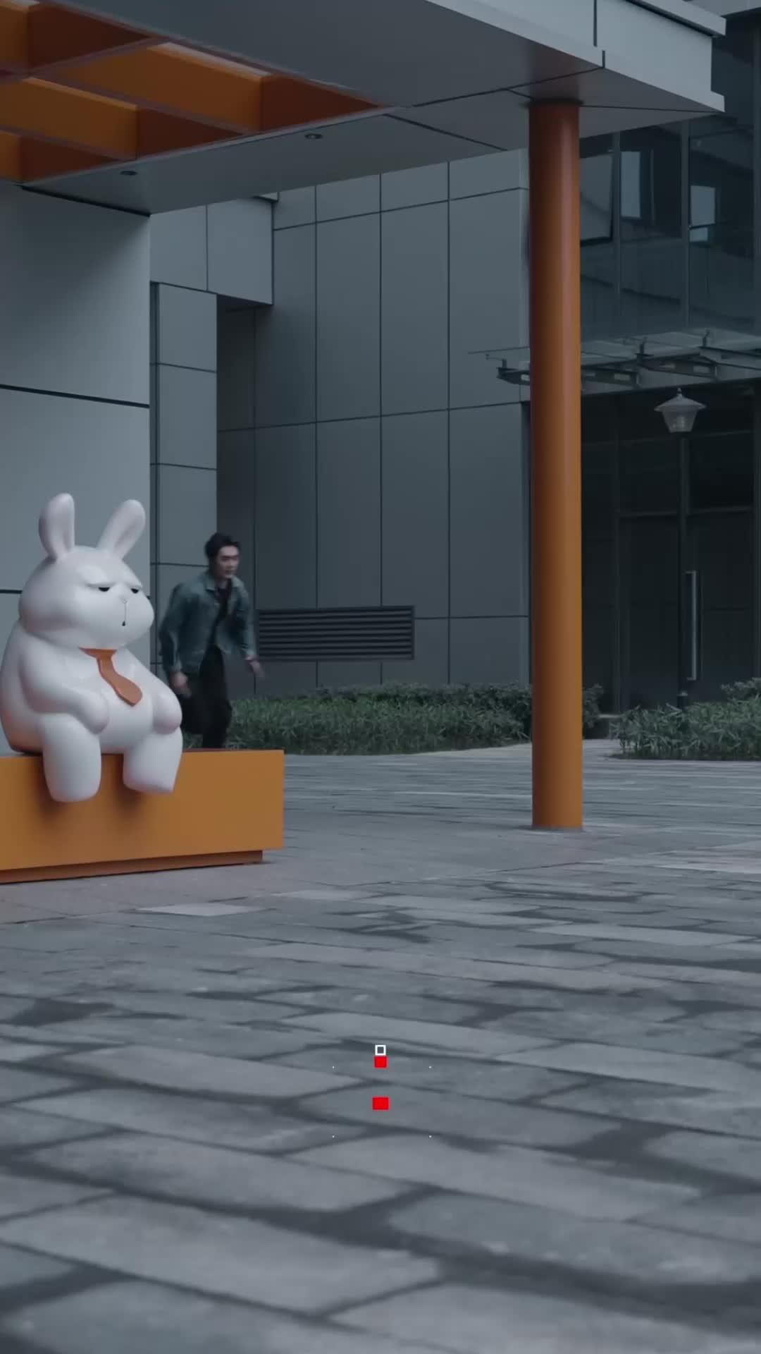 The opening shot of The Endgame Fortress is deceptively calm—a white rabbit statue perched on an orange bench, eyes half-closed in serene indifference, while the world around it trembles. Then enters Li Wei, a man whose denim jacket looks worn not from fashion but from urgency, his black T-shirt absorbing light like a void. He’s running, phone clutched to his ear, breath ragged, eyes darting as if scanning for threats no one else can see. The digital overlay—'Virus Infection Countdown'—flashes in blood-red font, ticking down from 00:10:58. It’s not a timer; it’s a sentence. And yet, he doesn’t scream. He doesn’t collapse. He *talks*. His voice, though strained, remains articulate—almost rehearsed—as if he’s been practicing this moment in his head for weeks. The camera lingers on his pupils, dilated not just from adrenaline but from recognition: he knows what’s coming. He’s not reacting to the countdown; he’s negotiating with it. Every micro-expression—his brow furrowing at 00:10:55, his lips parting slightly at 00:10:53—suggests he’s not hearing instructions from the other end of the line. He’s listening to his own conscience, weighing whether to warn others or protect himself. The irony is brutal: he’s outside, under open sky, surrounded by clean architecture and manicured shrubs, yet he’s trapped inside a psychological bunker. The orange pillars framing him aren’t structural supports—they’re prison bars painted cheerful. When he finally lowers the phone at 00:10:52, his gaze lifts—not toward the building entrance, but upward, into the overcast sky, as if searching for a signal only he can receive. That’s when the cut happens. Blackness. Not a fade, not a dissolve—just *cut*. Like the power was yanked. And then… shrimp.