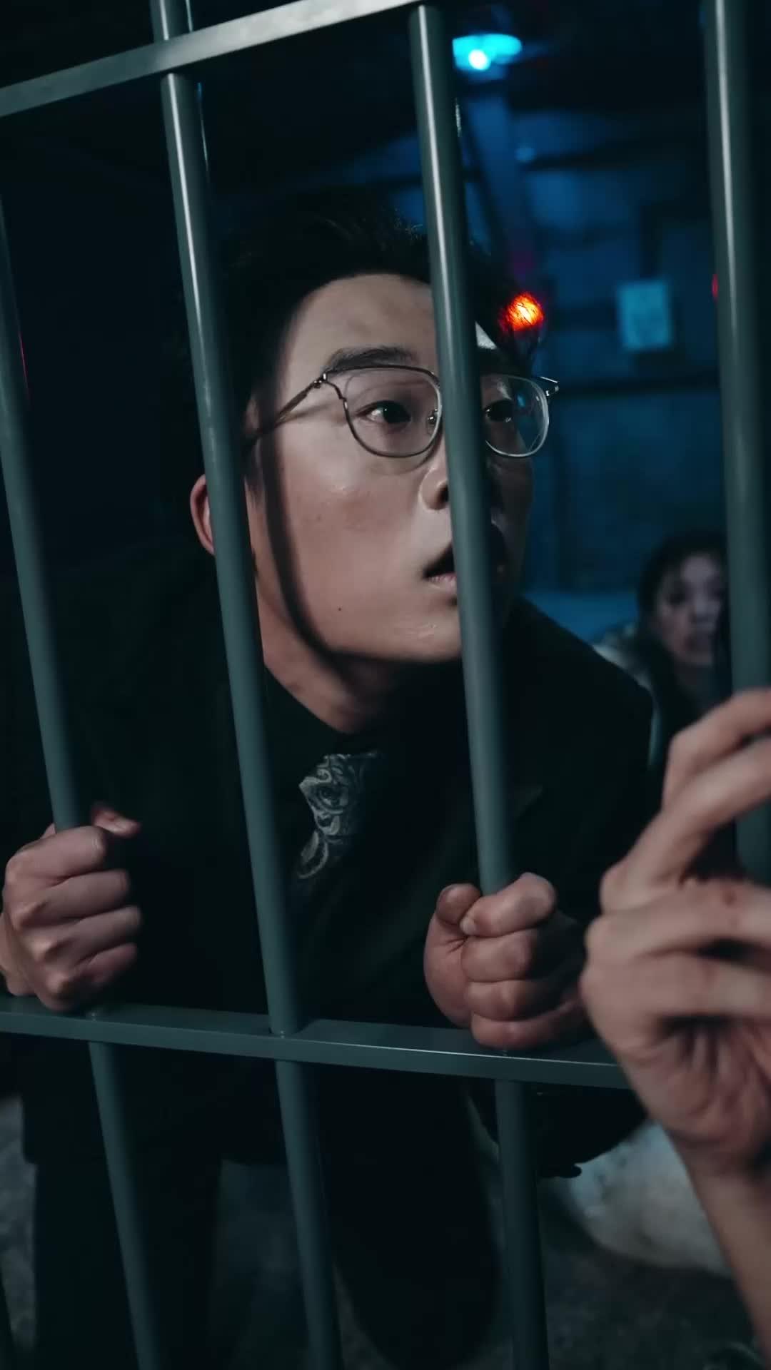 Let’s talk about what happens when a prison cell stops being just metal and starts becoming a stage—where every grip on the bars, every flicker of light, every swallowed breath tells a story no script could fully contain. In *The Endgame Fortress*, we’re not watching a heist or a rescue mission; we’re witnessing the slow unraveling of control, where the captors are as trapped as the captives, and the real jailbreak is psychological. The first man—glasses, dark coat, patterned tie—clings to the bars like they’re the last lifeline in a sinking ship. His eyes dart, his mouth opens mid-sentence, but no sound comes out—not because he’s silenced, but because he’s realizing something far more terrifying: he’s been *seen*. Not just observed, but understood. Behind him, blurred but unmistakable, sits the woman in the wedding dress—pearls still gleaming despite the grime, her veil half-torn, her expression oscillating between exhaustion and quiet fury. She doesn’t scream. She doesn’t beg. She watches. And that’s what makes the scene vibrate with tension: she’s not waiting for salvation. She’s calculating the cost of it.