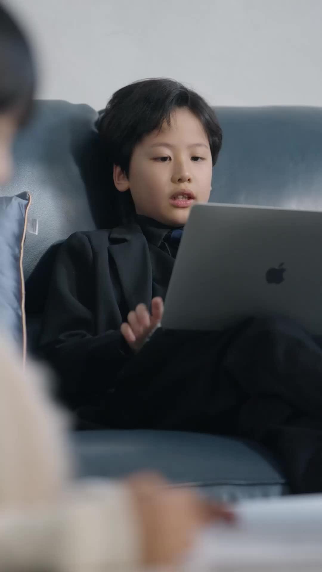 Now consider the costumes—not as fashion, but as armor. The black suit worn by the first boy (we’ll call him Jun) isn’t formalwear. It’s *uniform*. The brooch on his lapel? A compass, yes—but also a stylized eye, with concentric rings like ripples in water. He’s not navigating geography. He’s mapping emotional currents. When he types, his posture is rigid, shoulders squared, chin lifted. He’s not *using* the laptop; he’s *channeling* through it. His eyes flicker—not with screen glare, but with the afterimage of data streams only he can see. And when he smiles, briefly, at 00:15, it’s not joy. It’s confirmation. He’s found what he was looking for. And it terrifies him just enough to keep typing.