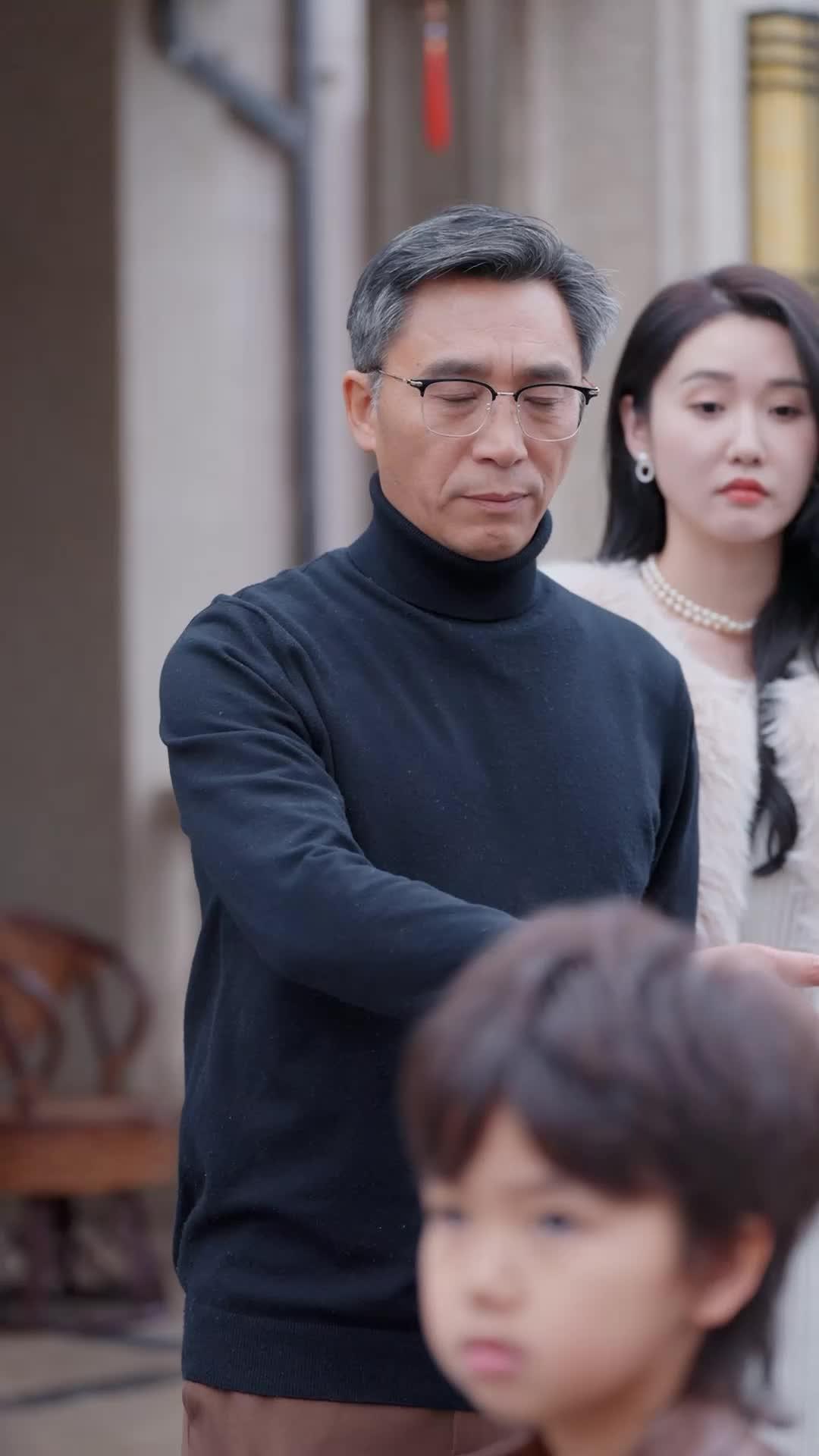 The surrounding adults react in telling ways. Yuan Mei exhales—visibly—her shoulders dropping an inch. Li Wei, the younger man in the taupe suit, watches with a mix of awe and unease, his fingers tapping restlessly against his thigh. He’s clearly not part of the original equation; he’s the variable introduced mid-scene, the modern disruptor in a world governed by unspoken codes. His tie—striped maroon and navy—feels like a concession to formality, but his stance is restless, his eyes darting between Lin Xiao and Professor Chen as if trying to translate a language he’s only half-learned. And then there’s the woman in the cream fur coat—Madam Liu, we’ll assume—standing slightly apart, her pearl necklace gleaming, her expression unreadable. She doesn’t move toward the group. She observes. Her stillness is louder than anyone’s words. When the camera cuts to her face, her lips twitch—not quite a smile, not quite a sneer—just the ghost of an emotion that suggests she knows more than she’s willing to share. Is she disappointed? Amused? Waiting for her turn?