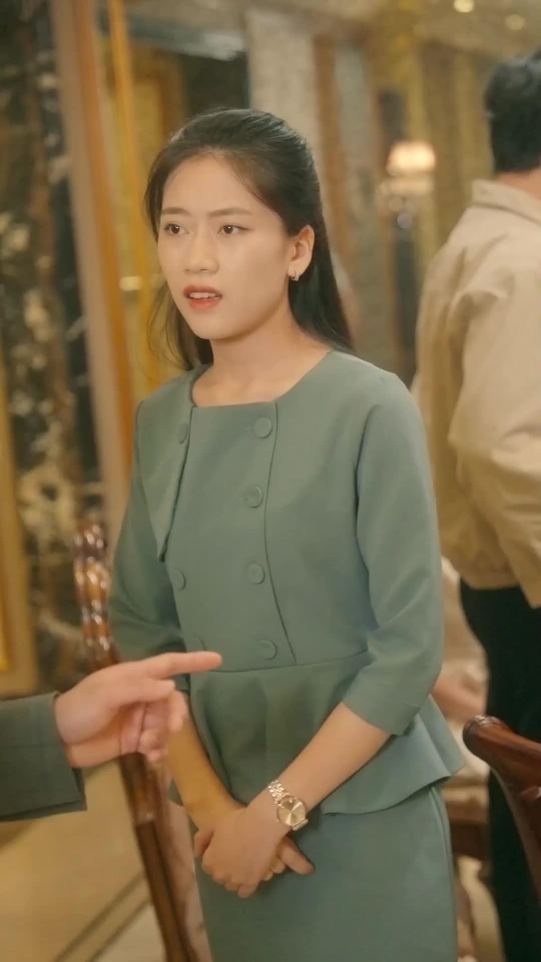 Let’s begin with Lin Xiao, the woman in the sage-green ensemble—structured jacket, peplum waist, double-breasted buttons like armor plates. Her posture is rigid, arms crossed not out of comfort but defiance. She wears a wristwatch—not for timekeeping, but as a symbol of control, precision, order. When someone points at her (a hand entering frame, index finger extended, almost accusatory), she doesn’t flinch. She turns her head slowly, deliberately, like a predator assessing threat level. Her eyes narrow—not with fear, but calculation. She’s not surprised. She’s been waiting for this moment. In The Gambler Redemption, characters don’t react; they *reposition*. And Lin Xiao has already mapped the battlefield.