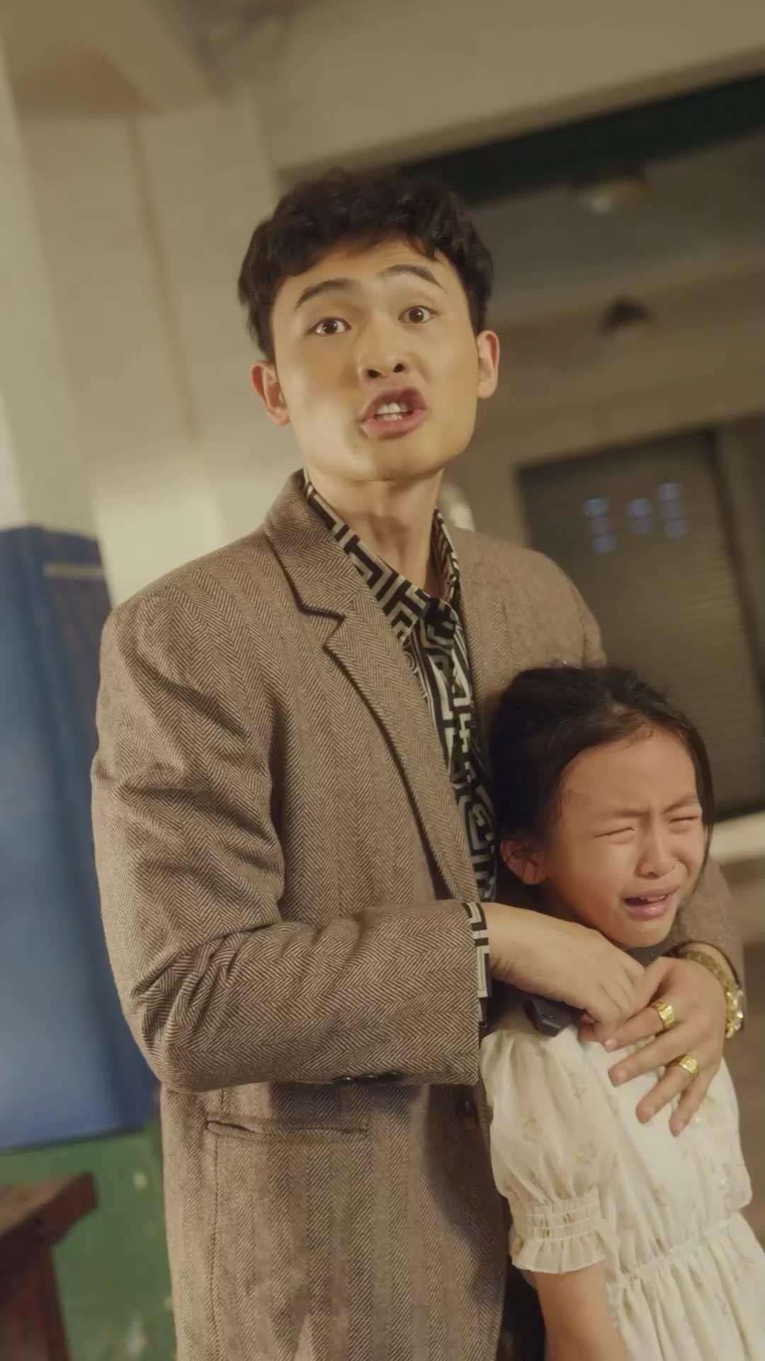 Let’s talk about that moment—when the camera lingers on Lin Jie’s trembling fingers wrapped around the girl’s neck, not with violence, but with something far more insidious: performance. He isn’t choking her. He’s *holding* her like a prop in a desperate theater of survival. The girl—Xiao Yu—sobs not just from fear, but from the unbearable dissonance of being used as emotional leverage while still clinging to the belief that this man might, somehow, be her protector. Her tears are real. His panic? Also real—but layered, like an onion peeled too fast, revealing contradictions beneath each skin. In *The Gambler Redemption*, every gesture is calibrated for maximum psychological torque. Lin Jie wears a herringbone blazer over a geometric-patterned shirt—elegant, almost academic—yet his eyes dart like a cornered animal. He points, he pleads, he shouts, then suddenly softens into a crooked smile that doesn’t reach his pupils. That smile? It’s the kind you wear when you’ve just remembered you left the stove on… while holding a hostage. Meanwhile, across the warehouse floor, Chen Wei and Mei Ling stand frozen—not because they’re powerless, but because they’re calculating. Chen Wei, in his leather jacket and rumpled tie, looks less like a hero and more like a man who just realized he’s been cast in the wrong genre. His open palm, thrust forward in warning, isn’t commanding authority; it’s begging for time. Mei Ling, beside him, grips his arm not for support, but to stop him from doing something stupid—like lunging, or confessing. Her expression shifts between alarm, pity, and something colder: recognition. She knows Lin Jie. Not just his face, but the architecture of his lies. The setting—a derelict industrial space with peeling green paint, exposed conduits, and that absurdly bright orange sofa—adds surreal tension. It’s not a hideout; it’s a stage set abandoned mid-rehearsal, where the props (a blue folder, a dropped cigarette, a single white slipper near the pillar) whisper backstories we’re not yet allowed to hear. When Chen Wei finally pulls out the black notebook—its cover worn smooth by repetition—it’s not evidence. It’s a talisman. He holds it up like a priest brandishing scripture, but his voice cracks on the third syllable. He’s not reading from it. He’s hoping it will speak for him. And Lin Jie? He flinches—not at the notebook, but at the way Xiao Yu’s crying hitched when she saw it. That’s the fracture point. The child’s trauma isn’t collateral damage here; it’s the fulcrum. *The Gambler Redemption* doesn’t ask whether Lin Jie is good or evil. It asks: what happens when someone who’s spent years betting on deception suddenly finds themselves holding the only truth left in the room—and it’s a sobbing eight-year-old? The genius of the sequence lies in its refusal to resolve. No gunshots. No grand confession. Just Lin Jie lowering the knife—not because he’s surrendered, but because he’s recalibrating. His grip on Xiao Yu loosens, but his thumb strokes her shoulder in a gesture so intimate it could be love or conditioning. Is he comforting her? Or reminding her who controls the script? The camera circles them, tight on their faces, catching the micro-expressions that betray everything: the way Lin Jie’s jaw unclenches just enough to let a breath escape, the way Xiao Yu’s tears slow not from relief, but from exhaustion—the surrender of a body that’s run out of fight. Meanwhile, Chen Wei and Mei Ling exchange a glance that speaks volumes: *He’s not going to kill her. But he’s not letting her go either.* That’s the real trap in *The Gambler Redemption*—not the warehouse, not the knife, but the illusion of choice. Every character is playing a role they didn’t audition for. Lin Jie, once perhaps a scholar or a clerk, now performs desperation with the precision of a seasoned actor. Chen Wei, who likely imagined himself as the righteous investigator, is learning that justice doesn’t arrive with sirens—it creeps in on silent feet, wearing a borrowed jacket and carrying a notebook full of half-truths. Mei Ling, whose blouse is slightly untucked and whose skirt has a faint stain near the hem, is the quiet center of gravity. She doesn’t shout. She observes. And in her silence, she holds the most dangerous weapon of all: memory. Because if anyone remembers what happened before the warehouse—if anyone recalls the day Xiao Yu vanished, or the night Lin Jie stopped answering calls—then the entire edifice of his performance begins to crumble. The final wide shot, where five figures stand in a loose semicircle around the orange sofa, is chilling not for its symmetry, but for its imbalance. Two pairs facing off, and one child caught in the middle like a pawn that’s started moving on its own. The lighting casts long shadows that merge on the concrete floor—Lin Jie’s and Xiao Yu’s silhouettes overlapping until you can’t tell where one ends and the other begins. That’s the visual thesis of *The Gambler Redemption*: identity isn’t fixed. It’s negotiated in real time, under duress, with a knife at your throat and a child’s tears soaking your sleeve. And the most terrifying part? None of them are lying. They’re all telling the truth—as they understand it, in that exact second. Lin Jie believes he’s protecting Xiao Yu. Chen Wei believes he’s saving her. Mei Ling believes she’s preventing a worse outcome. Xiao Yu? She believes, against all evidence, that if she stops crying, maybe he’ll let her go home. That’s not naivety. That’s hope—and in *The Gambler Redemption*, hope is the most volatile substance in the room.
