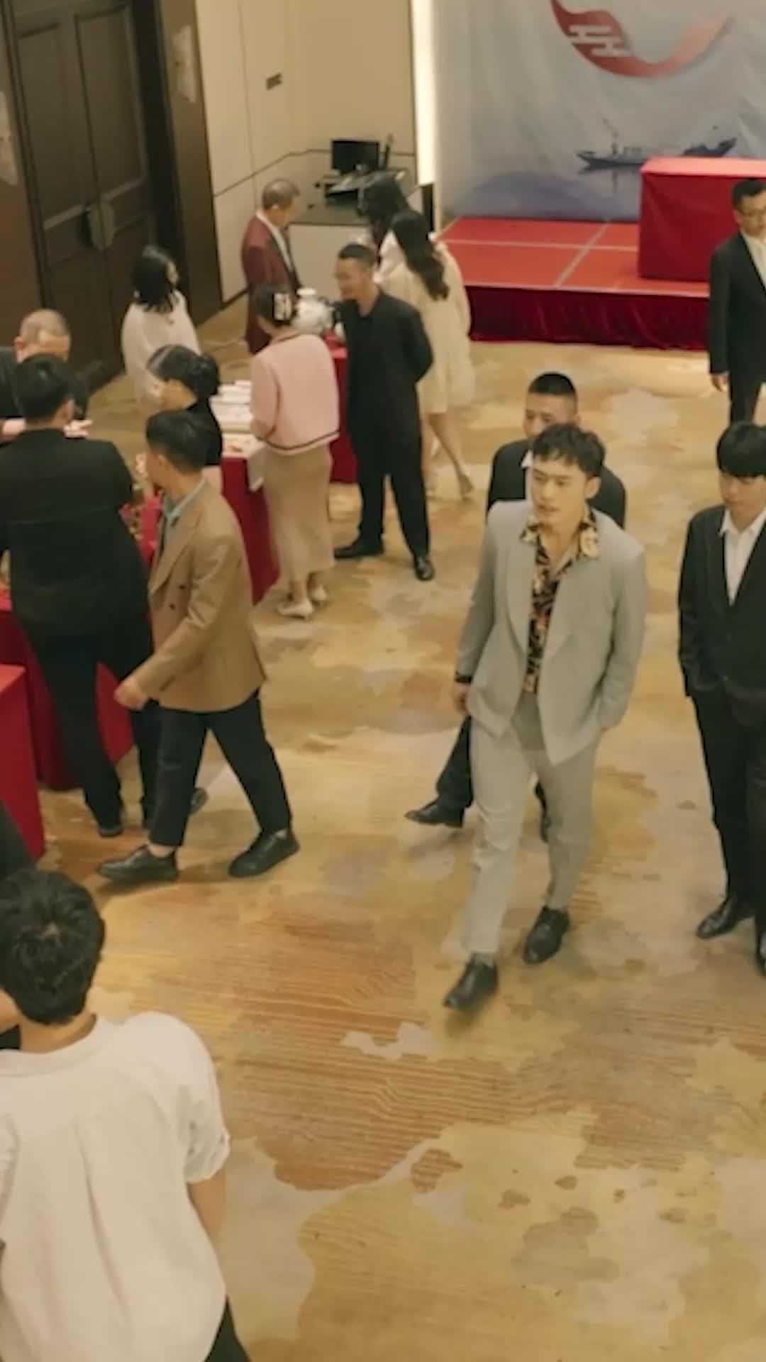 The brilliance of The Gambler Redemption lies in how it uses environment as emotional amplifier. The hall is spacious, yet claustrophobic—the high ceilings feel oppressive, the red drapes like bloodstains on the walls. Background conversations fade in and out, creating a sonic tapestry of gossip and speculation. A woman in pink whispers to her companion, gesturing toward Zhang Tao; a man in a black tux checks his watch, clearly eager for the auction to begin, as if hoping the spectacle will distract from the human drama unfolding before him. But the camera refuses to look away. It lingers on details: the sweat beading at Li Wei’s temple despite the room’s cool temperature; the way Zhang Tao’s shirt clings slightly to his back, suggesting he’s been here longer than he let on; the faint smudge of ink on Lin Xiao’s thumb, hinting she’s been reviewing documents, perhaps appraisals, perhaps old letters. These aren’t accidents. They’re clues, woven into the fabric of the scene like threads in a tapestry only the most attentive viewers will trace.