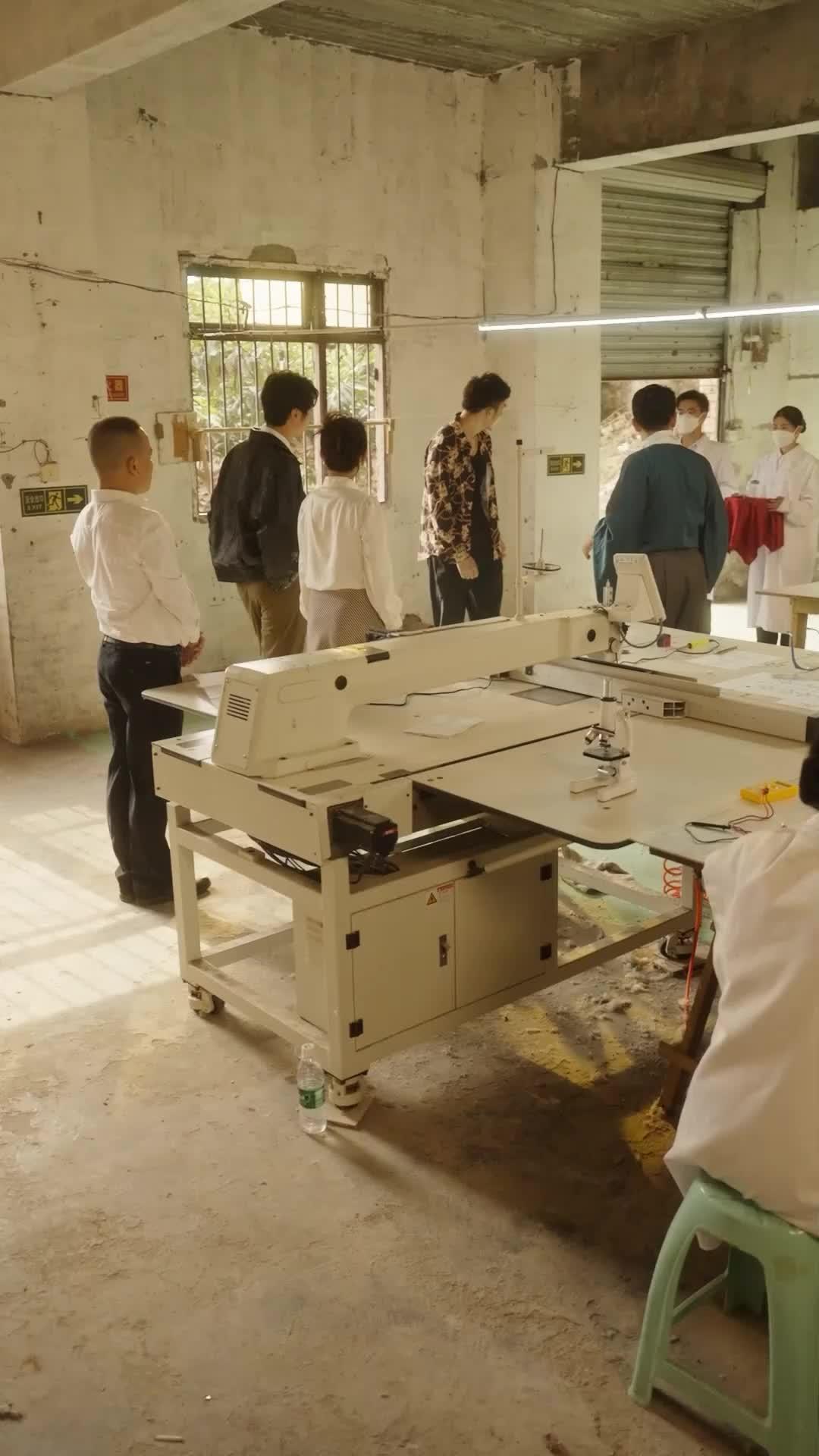 Let’s talk about the silence between the lines—the kind that settles like dust on an abandoned workbench, thick enough to choke on. In The Gambler Redemption, the most explosive moments aren’t shouted; they’re handed over in folded paper, displayed under plexiglass, or whispered inches from a colleague’s ear while the rest of the room holds its breath. The scene unfolds in what looks like a decommissioned textile workshop—peeling paint, barred windows, a single fluorescent strip buzzing like an angry insect overhead. Yet this isn’t decay; it’s incubation. Something is being born here, messy and uncertain, and the characters are both midwives and potential executioners. Lin Xiao, dressed in that immaculate white blouse with its bow-tied neck—a uniform of restraint—moves through the space like a ghost who’s decided to stay. Her skirt, houndstooth-patterned in earth tones, grounds her, but her eyes? They’re scanning, calculating, absorbing every shift in posture, every flicker of expression. She’s not just observing; she’s archiving. Every micro-expression from Chen Wei, every frantic gesture from Zhou Jian, every hesitant step from the lab-coated assistants—they’re all data points in her internal ledger. And that ledger is about to be audited.