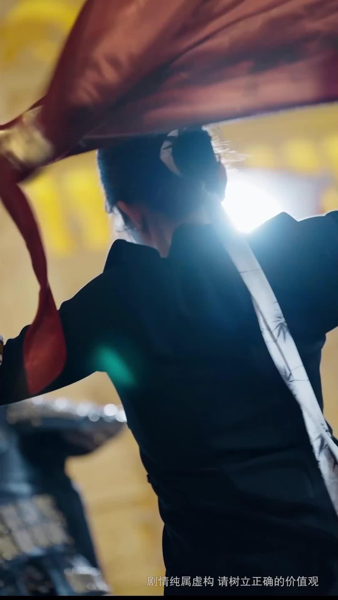 In the opening frames, the camera lingers on the back of a woman—her hair coiled in a tight bun, secured with a white ribbon embroidered with bamboo motifs. She stands before a blinding light, as if emerging from myth itself. A crimson fabric, rich and heavy, unfurls behind her like a phoenix’s wing, stitched with golden birds mid-flight—symbols of rebirth, defiance, sovereignty. This is not mere costume design; it is narrative armor. The moment she turns, the world shifts. Her face is composed, but her eyes hold the quiet fury of someone who has long outgrown the need to shout. She wears a black tunic with traditional frog closures, sleeves trimmed in ornate gold-and-black brocade—modern tailoring fused with ancestral symbolism. Every detail whispers power without uttering a word. This is Zhang Lingwei, the titular Goddess of War, and her entrance is less a walk down a runway and more a coronation staged in real time.