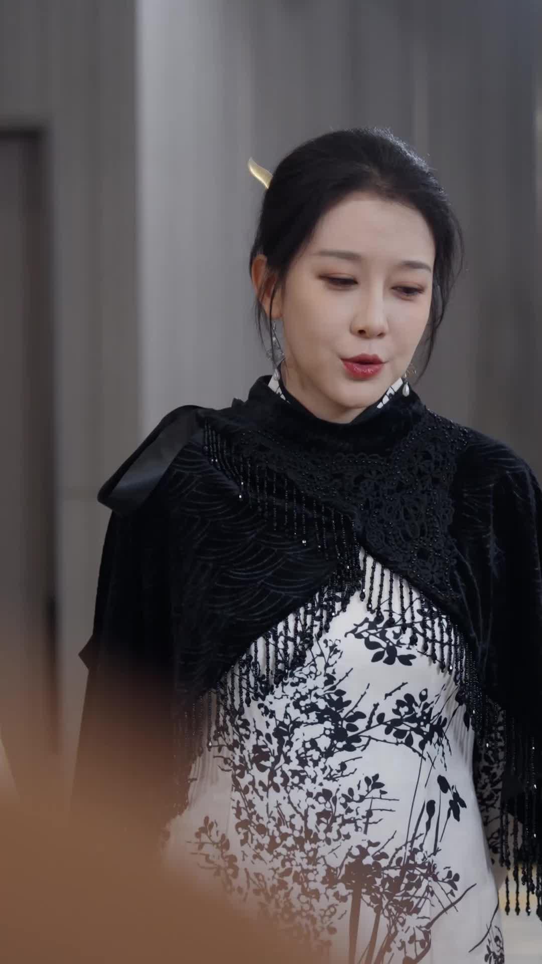 There’s a particular kind of silence that settles in rooms where power is being renegotiated—not the silence of emptiness, but the dense, charged quiet of people holding their breath, waiting to see who blinks first. That’s the atmosphere in this pivotal scene from The Goddess of War, where tradition collides with subversion, and every glance carries the weight of generations. Lin Xue stands at the epicenter, not because she shouts, but because she *exists* with such calibrated intensity that even her stillness feels like a declaration. Her black velvet shawl, edged with shimmering beads and delicate fringe, moves slightly with each inhale—a subtle reminder that she is alive, aware, and utterly in control. The white qipao beneath, painted with monochrome branches and blossoms, evokes classical poetry, yet the high collar and structured shoulders give it an almost military rigidity. She is elegance forged in fire, beauty sharpened into strategy.