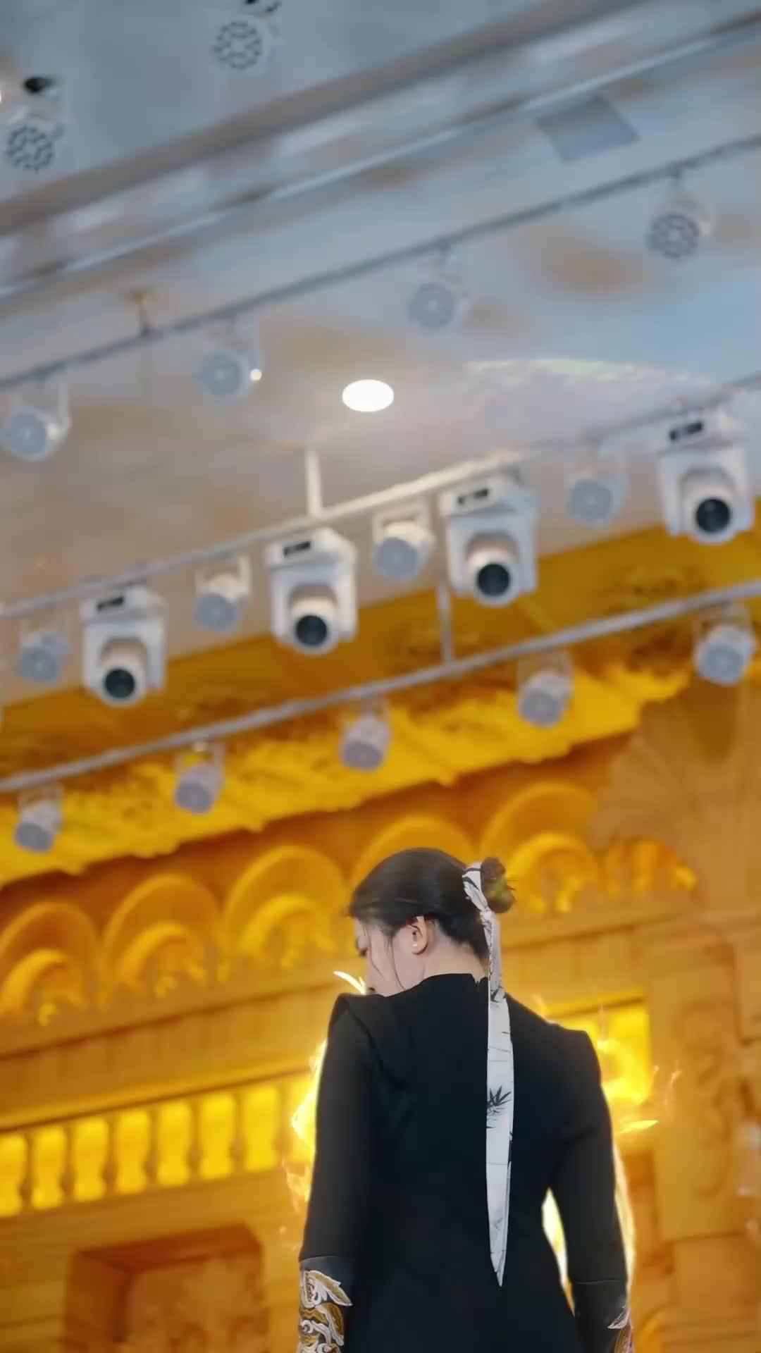 In the opulent hall draped in gold filigree and crimson floral arrangements, where chandeliers shimmer like celestial constellations and spotlights hang like silent judges, a confrontation unfolds—not with swords or speeches, but with *energy*, with *intent*, with the raw, trembling pulse of unspoken history. This is not a wedding. Not really. It’s a ritual disguised as celebration, a stage where Lin Xue, the woman in black with embroidered dragon cuffs and a posture carved from granite, stands unmoved while chaos erupts around her. She doesn’t flinch when flames—*actual* golden fire, digitally rendered yet emotionally visceral—erupt behind her like divine wrath. She doesn’t blink when Su Mei, the younger woman in the indigo-and-gold qipao, thrusts out her palm and conjures violet lightning that crackles like broken glass. The magic here isn’t whimsical; it’s desperate. It’s the last gasp of someone who still believes in fairness, in justice, in *proof*. Su Mei’s eyes—wide, kohl-rimmed, trembling with betrayal—are not those of a villain. They’re the eyes of a daughter who just realized the family heirloom she wore wasn’t a gift, but a leash.