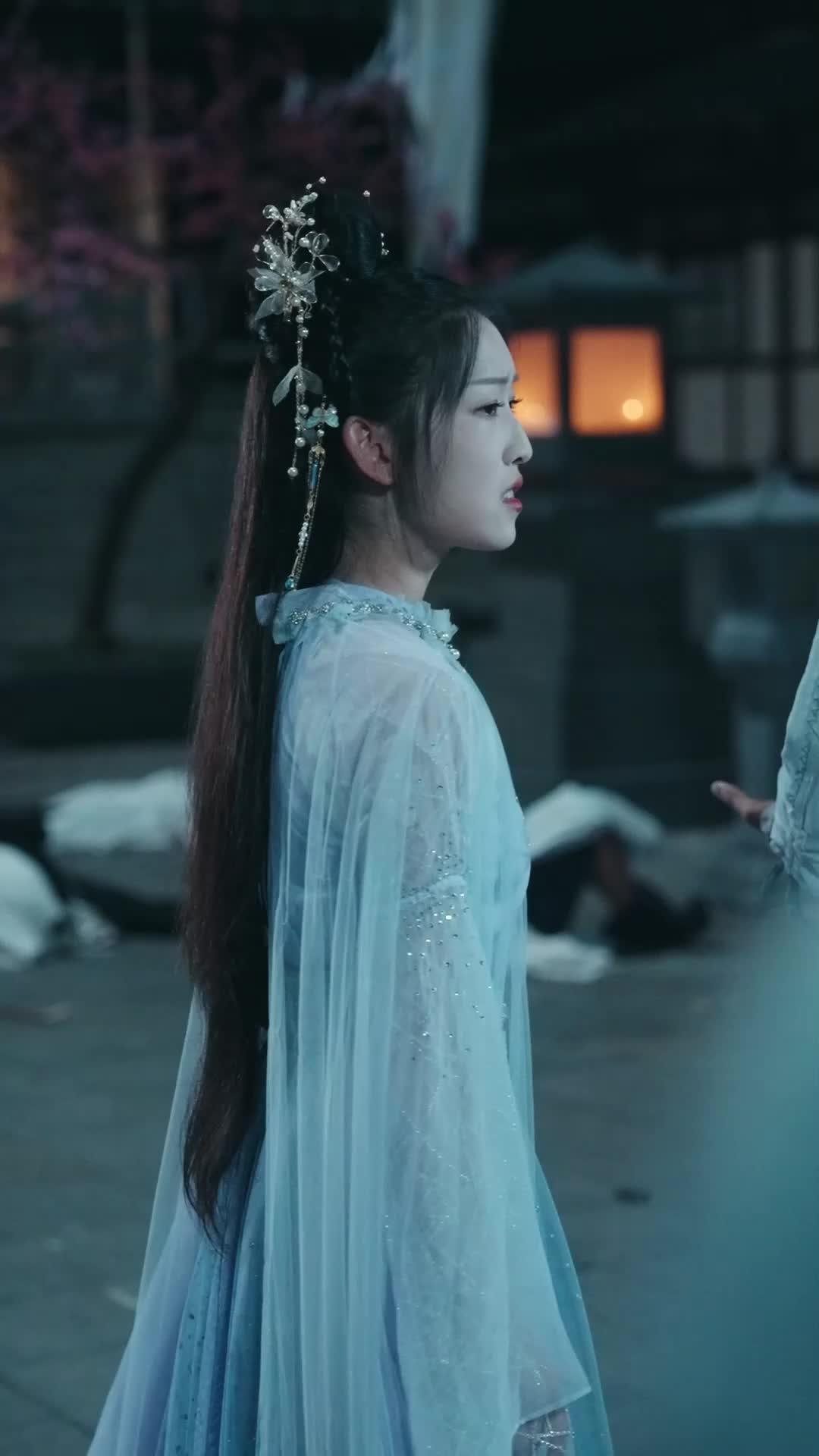 Let’s talk about what unfolded in that hauntingly beautiful courtyard scene—where every breath felt like a confession, and every glance carried the weight of a thousand unspoken regrets. The atmosphere was thick with incense smoke and sorrow, lit only by the soft amber glow of paper lanterns hanging like dying stars above stone steps stained with blood and silence. This wasn’t just a confrontation—it was a ritual. A slow-motion unraveling of loyalty, betrayal, and the unbearable cost of power. At the center stood Ling Xue, her pale blue gown shimmering like frozen mist under the night sky, each sequin catching the light like a tear held back too long. Her hair, intricately pinned with silver blossoms and dangling jade tassels, framed a face caught between fury and grief—her lips trembling not from fear, but from the sheer impossibility of what she was being asked to do. She wasn’t just a character; she was a vessel. And the object in question? That small, lacquered red-and-black censer, held with trembling reverence by Jian Yu, whose eyes glistened with tears he refused to shed. He wore layered robes of muted grey and seafoam silk, embroidered with cloud motifs that seemed to swirl with his inner turmoil. His voice, when it finally broke through the tension, wasn’t loud—but it cut deeper than any sword. ‘You know what this means,’ he whispered, not to Ling Xue, but to the universe itself. And yes, this is *The Great Chance*—not a title of triumph, but of reckoning. The moment where fate offers you one final choice, knowing full well that no option leads to peace.