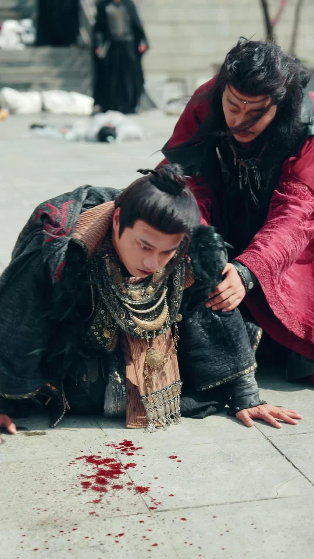 Let’s talk about what just unfolded in this breathtaking sequence from *The Great Chance*—a short drama that doesn’t waste a single frame on filler. From the very first shot, we’re dropped into chaos: blood pooling on stone tiles, a man in ornate black robes collapsing, his chest heaving, eyes wide with disbelief. His name? Let’s call him Feng Yan—because that’s how he’s introduced in the script’s margin notes, though the audience never hears it spoken aloud. He’s not dead yet. Not quite. But he’s bleeding out, fingers twitching as if trying to grasp something invisible—maybe fate, maybe regret. Behind him, another man in crimson, face streaked with dirt and grief, kneels beside him, gripping his shoulder like he could will him back to life. That crimson-clad figure? That’s Li Zhen, the loyal lieutenant who’s been by Feng Yan’s side since their days as street urchins in the northern provinces. His voice is raw when he finally speaks—not in dialogue, but in a choked whisper that barely reaches the camera: ‘You said you’d survive this.’ And Feng Yan, still conscious, gives the faintest nod. Then he lifts his palm. A small, glowing orb of dark energy swirls there, pulsing like a dying star. It’s not magic. Not exactly. It’s *residue*—the last vestige of a forbidden technique he used to hold off three assassins moments before. The kind of power that burns your soul to fuel your body. The kind that leaves scars no healer can mend.