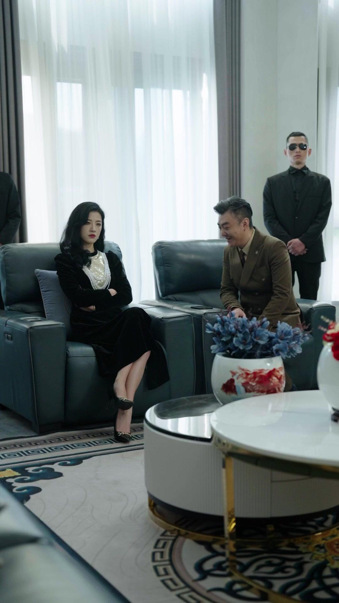 In the opening sequence of *The Hidden Dragon: A Father's Redemption*, we are thrust into a world where power is not worn on sleeves but stitched into lapels—where silence speaks louder than threats and a single phone call can unravel years of carefully constructed facades. Zhang Gongcheng, introduced with the ironic subtitle ‘Underground Emperor’ (Tom Hill), sits in a minimalist yet opulent lounge, his brown double-breasted suit immaculate, a silver star-shaped pin gleaming like a hidden badge of authority. His smile is warm, almost paternal—but it’s the kind of warmth that lingers too long, like smoke after a fire you didn’t see ignite. Across from him, Sweetie Amy reclines in a black velvet dress adorned with cascading pearls, her arms folded, lips painted crimson, eyes sharp as cut glass. She doesn’t speak much in these early frames, but her posture screams resistance—not defiance, not yet, but the quiet tension of someone who knows she’s being watched, measured, weighed. Behind them, two men in black suits stand like statues, sunglasses masking their gaze, hands clasped at waist level—a visual motif repeated throughout *The Hidden Dragon: A Father's Redemption* to signal surveillance, loyalty, or perhaps just the cost of proximity to power.