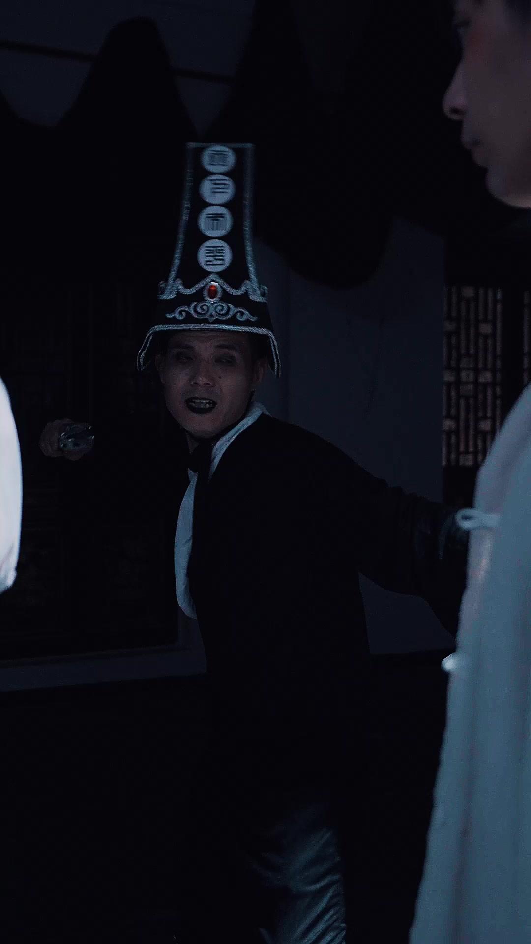 Watch how Li Wei’s expression evolves across the repeated close-ups. At first, it’s defiance—jaw clenched, brows furrowed, a boy refusing to kneel. Then, as the pressure mounts, his eyes dart left, right, upward—not searching for escape, but for *meaning*. He’s piecing together fragments: the symbols on their hats (‘Wuchang’—Impermanence—for Jin; ‘Yi Jian Sheng Cai’—First Sight, Instant Fortune—for Mei Ling), the way their sleeves brush against his arms like cold serpents, the faint scent of incense and iron in the air. His white robe, now stained with streaks that resemble calligraphy gone wrong, becomes a canvas. Each blood mark is a character he can’t read yet—but he *feels* its weight. The director uses shallow focus masterfully: when Jin leans in, the background dissolves into velvet black, leaving only the three faces suspended in time. You forget the room. You forget the world. There’s only this triangle of fate, balanced on the edge of a blade.