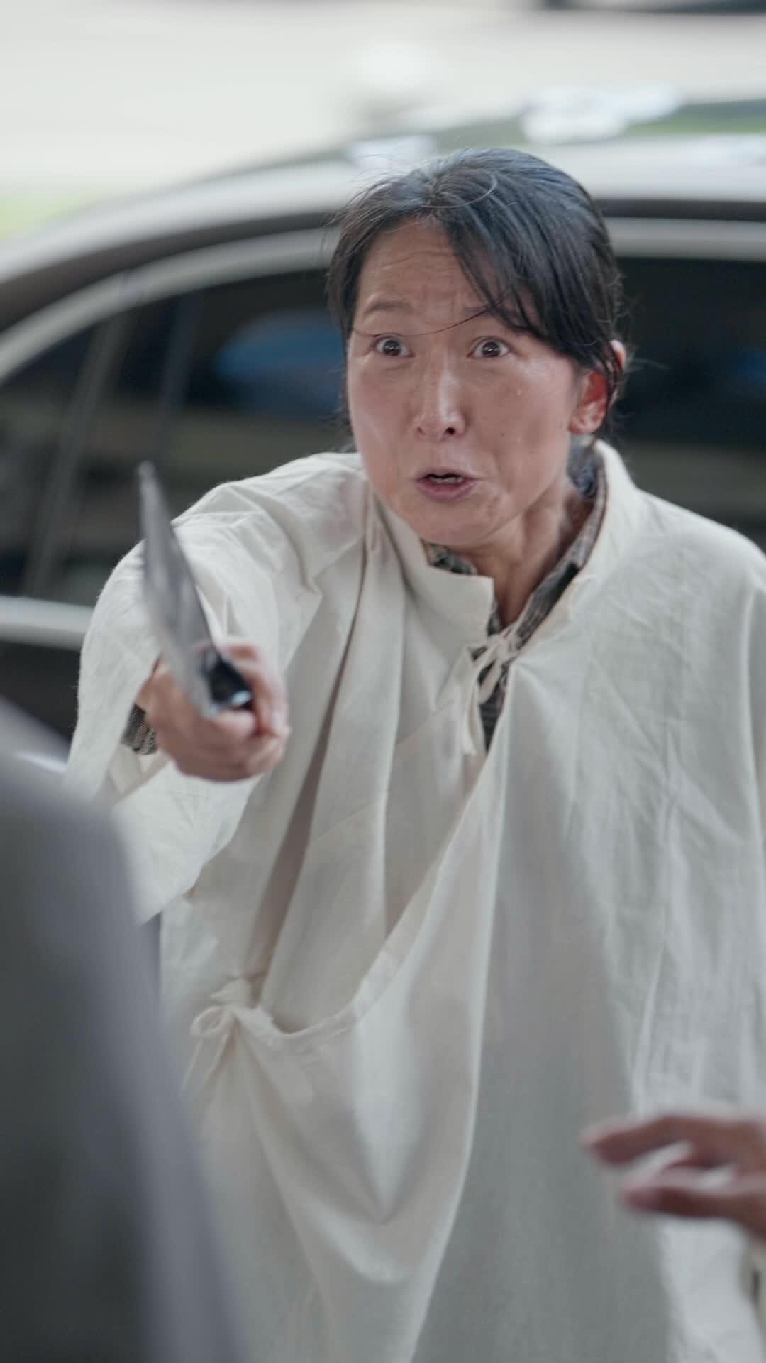 In *The Most Beautiful Mom*, the white-clad woman’s trembling hands and raw scream reveal a mother’s despair—not madness, but grief weaponized. The knife hovers like a question mark: will she strike or collapse? Every close-up breathes tension. 🩸 #ShortFilmGold