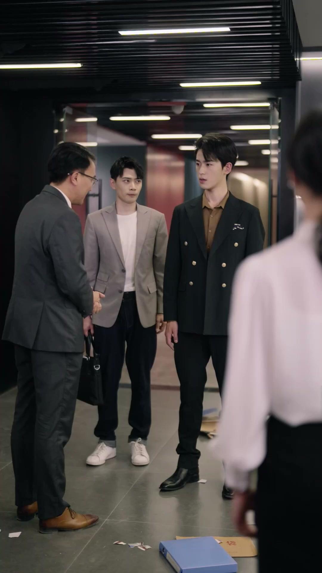 In *My Groupie Honey is a Movie Star*, the hallway confrontation isn’t just about dropped files—it’s a metaphor for fragile corporate facades. The older man’s frantic shuffling of papers mirrors his crumbling authority, while the younger man’s calm gaze says more than words ever could. That white blouse? A silent witness. 📄👀