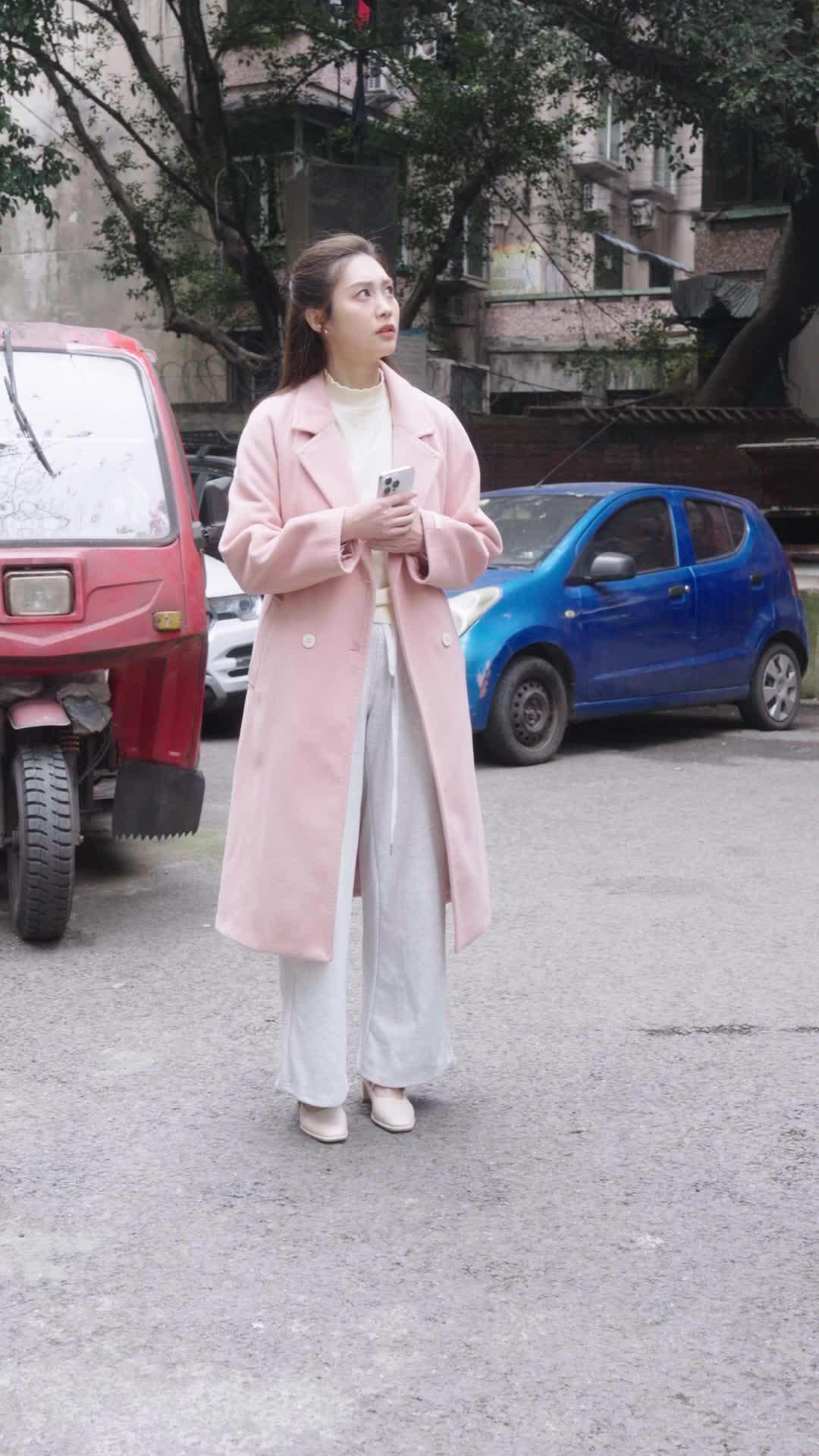In *Home Temptation*, the pink coat becomes a symbol of urgency—her wide eyes, trembling hands, and frantic sprint up mossy stairs scream desperation. The alley’s grit contrasts her polished look, making every step feel like a race against time 🏃‍♀️💨. Those red armbands? Not just props—they’re emotional landmines.