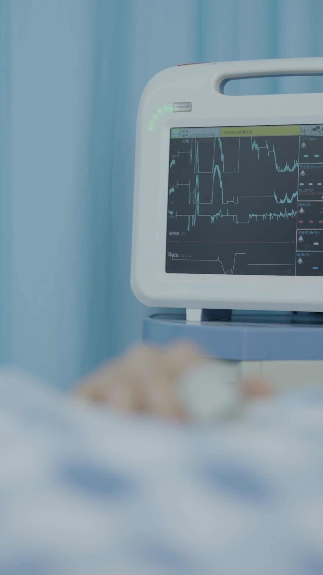 In the opening frames of *The Radiant Road to Stardom*, we are thrust not into glamour or fanfare, but into the hushed, sterile intimacy of a hospital room—where life hangs by the rhythm of a monitor’s jagged green lines. The camera lingers on the vital signs screen: heart rate erratic, oxygen saturation hovering just above critical, blood pressure fluctuating like a tide caught between storm and calm. A hand rests limply atop a blue-and-white checkered blanket, fingers slightly curled, a pulse oximeter clipped to the index finger—a small white device glowing faintly, almost apologetically, as if it too knows the gravity of what it measures. Then, the focus shifts upward, revealing Lin Zeyu, his face pale but peaceful, wrapped in bandages that coil around his forehead like a crown of quiet endurance. His eyes remain closed—not in death, but in deep suspension, as though his consciousness has retreated behind a veil, waiting for permission to return. The lighting is soft, cool, clinical—but not cold; there’s a tenderness in the way the light catches the fine hairs at his temples, the slight rise and fall of his chest beneath the striped pajamas. This is not a scene of trauma, but of transition. The audience feels it instinctively: this is not the end of a story, but the pause before its next movement.
