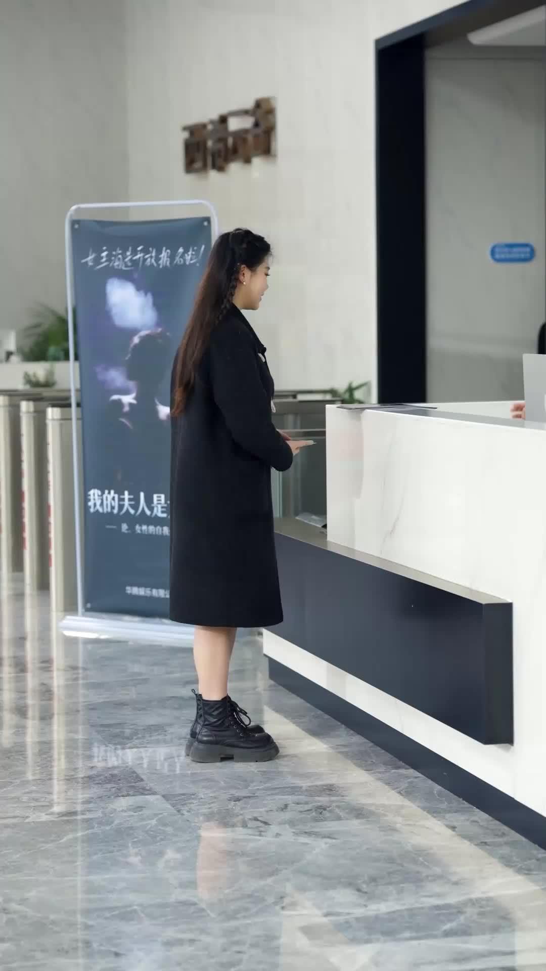 There’s a particular kind of silence that exists in casting rooms—the kind that hums with unsaid things. It’s not empty. It’s charged. Like the air before lightning. *The Radiant Road to Stardom* opens not with fanfare, but with footsteps on marble: steady, deliberate, belonging to a woman in black—Xiao Yu—approaching a reception desk that gleams like a promise. Behind her, a poster for *My Wife Is Da Long 2* looms, its tagline partially obscured, but the phrase ‘even the most ordinary person can become extraordinary’ lingers in the subtext. Irony? Foreshadowing? Either way, it sets the stage for what follows: a ritual older than Hollywood, newer than TikTok—auditioning.