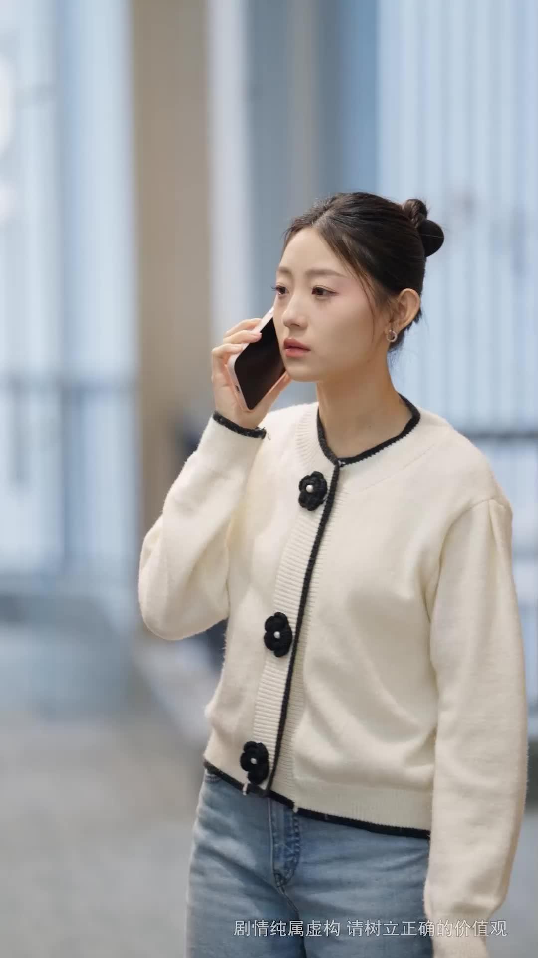 Let’s talk about that quiet storm in the boardroom—the kind that doesn’t roar but still leaves everyone breathless. In *The Radiant Road to Stardom*, we’re not watching a typical audition or contract signing; we’re witnessing a psychological ballet where every glance, every pause, every finger tracing a clause on paper speaks louder than dialogue ever could. The protagonist, Lin Xiao, enters not with fanfare but with a phone call still clinging to her ear—her hair neatly coiled, her cream cardigan adorned with black floral buttons like tiny anchors of composure. She’s dressed for hope, not desperation. Yet the moment she steps into that sleek, glass-walled office, the air shifts. The polished floor reflects not just her silhouette, but the weight of expectation pressing down on her shoulders.