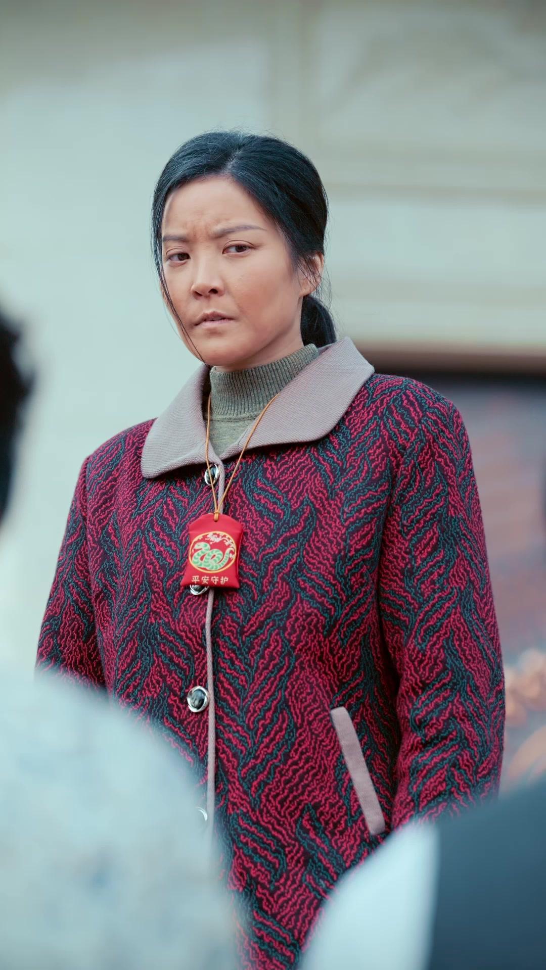 That red charm—'Peace and Protection'—hangs like a verdict. She stands, calm, while three men kneel, trembling. Not fear of her, but of what she represents: consequence. In *Blessed or Cursed*, power isn’t shouted—it’s worn quietly, like wool and fate. 🧵🔥