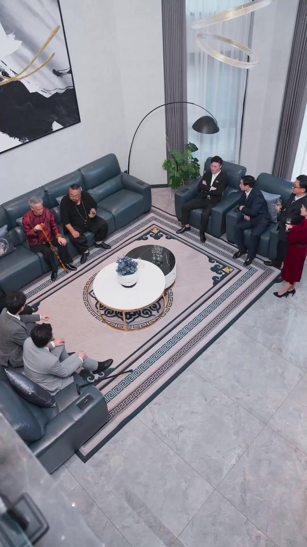 The scene’s rhythm is surgical. Short cuts between faces build pressure. A lingering shot on Director Zhang’s glasses as they catch the light—his reflection showing Jiang Feng’s silhouette behind him. A quick pan down to the rug, where the geometric pattern suddenly looks like a maze. And then—the clincher—the moment when Li Wei leans toward Chen Tao and whispers something that makes Chen Tao’s pupils contract. We don’t hear it. We don’t need to. The effect is written on his face: shock, then dawning horror, then resolve. Whatever Li Wei said, it changed the game. And Jiang Feng, across the room, *smiles*. Not at them. At the realization that the pieces are moving.