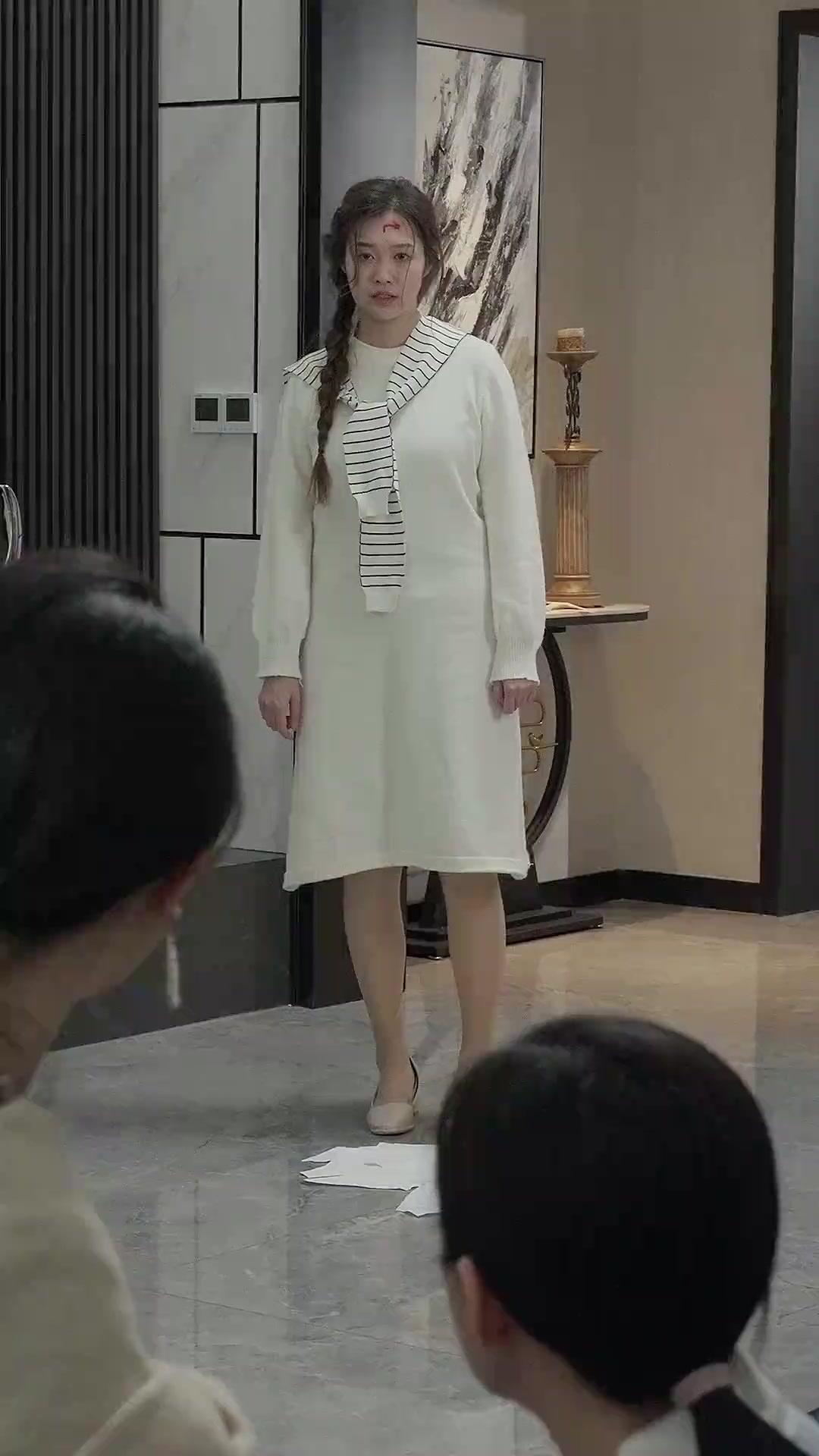 There’s a particular kind of silence that settles in luxury homes after a storm—not the peaceful quiet of resolution, but the heavy, suffocating stillness of aftermath. In The Reunion Trail, that silence is almost audible, thick with unsaid words and unshed tears, as the camera pans across a scene where three women exist in parallel universes of pain, each trapped in her own version of the truth. Lin Xiao, standing at the threshold with blood drying on her temple, embodies the shock of revelation. Her white dress, adorned with a striped sailor collar, feels deliberately ironic—a garment associated with youth, innocence, and obedience, now stained by violence and betrayal. She doesn’t cry. She doesn’t yell. She simply stares, her pupils dilated, her breath shallow, as if her body is trying to outrun the information her brain has just processed. The papers at her feet aren’t just documents; they’re the scaffolding of her life, now collapsed. Each sheet represents a lie she’s believed, a promise broken, a future erased. And yet, she doesn’t pick them up. She lets them lie there, scattered like confetti at a funeral.