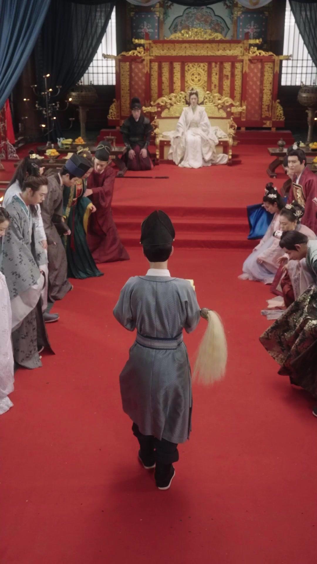A young clerk strides down the crimson aisle, scroll in hand, as nobles bow low—yet their eyes flick upward, whispering rebellion. The Empress watches, serene but sharp-eyed, while one courtier dares a smirk. In *The Do-Over Queen*, power isn’t just worn—it’s *read* aloud, and every syllable trembles with consequence. 📜🔥