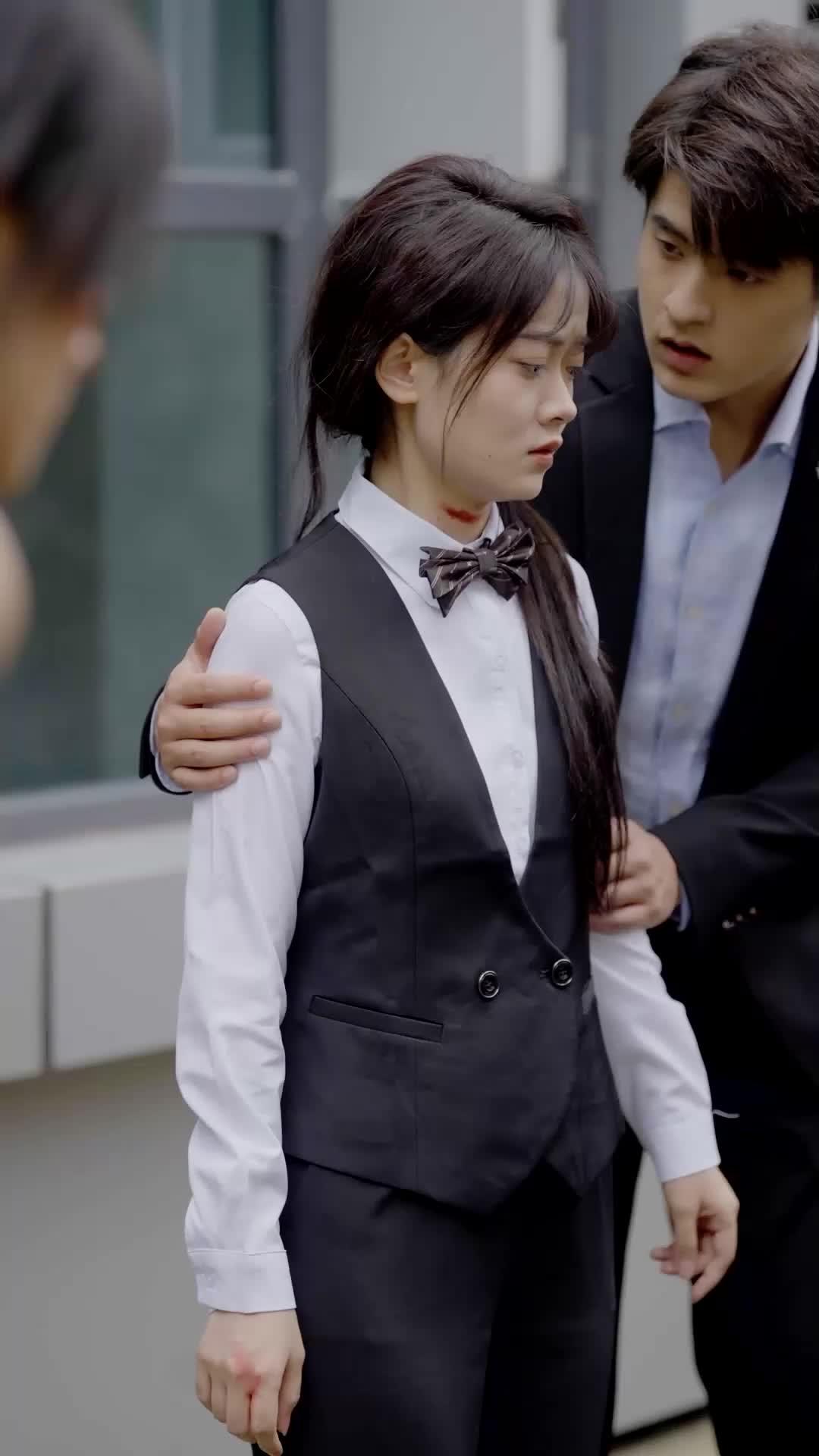 There’s a particular kind of dread that settles in your chest when you realize the violence isn’t coming—it’s already happened. That’s the atmosphere that opens The Silent Heiress: not with sirens or shattered glass, but with stillness, with blood trickling down a throat, with a bowtie tied too tight. Lin Xiao stands at the center of this tableau, her posture rigid, her breathing shallow, her long hair half-pulled back as if she’d tried to gather herself before giving up. The stain on her neck isn’t smeared—it’s precise, deliberate, like a signature. And yet, she doesn’t touch it. She doesn’t wipe it away. She lets it remain, a silent declaration: I am marked. I am seen. I am not broken.