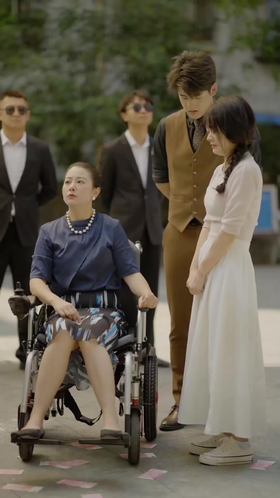 Meanwhile, the heiress—let’s call her Madame Li, though the title never names her outright—watches from her wheelchair with the calm of someone who has seen this dance before. Her navy blouse is immaculate, her pearls gleaming under the afternoon sun, her posture unyielding. Yet her eyes betray her: they narrow, just slightly, when Uncle Chen begins to speak. Not in anger. In calculation. She knows the script. She’s heard the pleas, the justifications, the tearful confessions. What she hasn’t heard—what she waits for—is the truth stripped of ornament. And when Uncle Chen finally utters the words (inaudible, of course, because *The Silent Heiress* thrives on what is left unsaid), his voice cracks not from weakness, but from the sheer effort of honesty. He doesn’t beg for mercy. He asks for *acknowledgment*. For her to see him—not as a thief, not as a fool, but as a father who failed, a brother who compromised, a man who loved too recklessly.