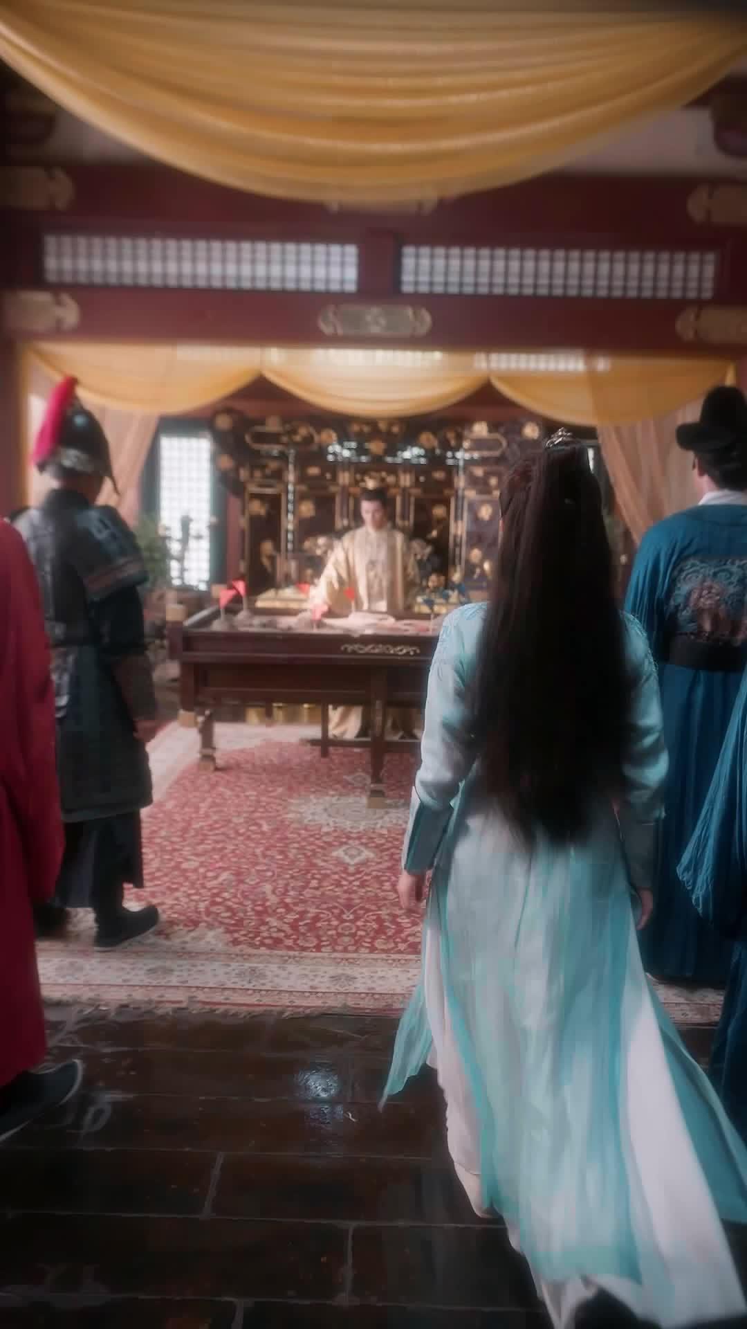 That moment when the Empress-in-Blue bows—not out of submission, but strategy. Her hands form a perfect circle, eyes steady, while the Emperor’s smirk betrays he’s already hooked. The sand-table war game? Just a front. Real battle is in the glances. 🏯⚔️ #TensionInSilence