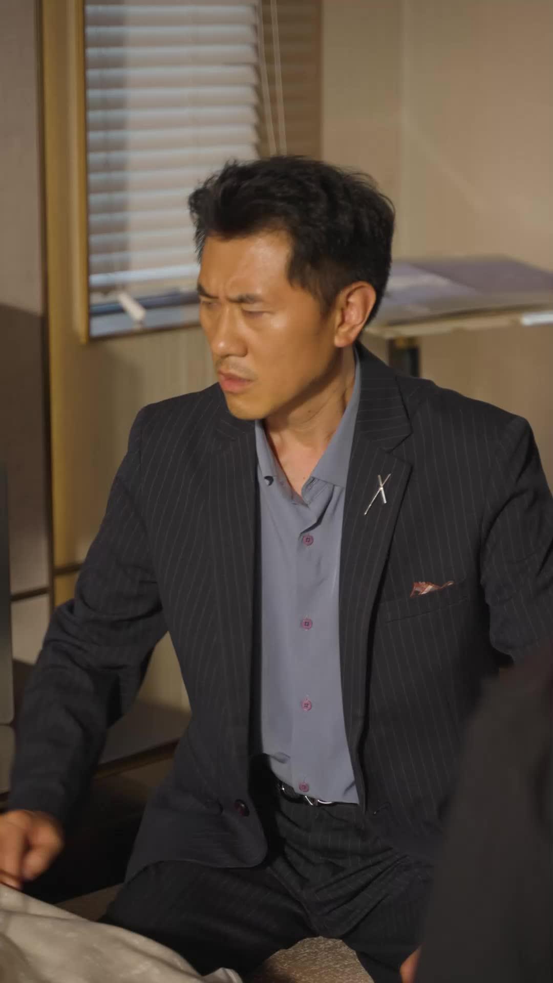 That pinstripe suit isn’t just fashion—it’s armor. The way he grips the bedsheet while avoiding eye contact? Classic emotional suppression. Meanwhile, the younger man’s smirk hides something deeper—maybe guilt, maybe ambition. The old man’s gaze? Pure calculation. Every frame breathes tension like a thriller, but it’s all in the silence. 🤫 #NetShortVibes
