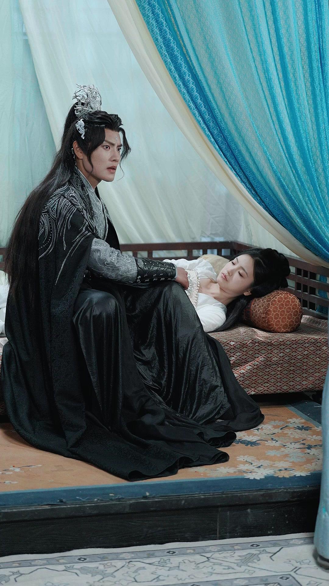 That bedchamber tension? Chef’s kiss. The black-robed lord cradling the sleeping lady while the pale-blue figure stands like a ghost—every glance screams unspoken history. Candlelight flickers, but the real fire’s in their eyes. Who’s guarding whom? Or is someone already lost? 🕯️🔥 #Muggle'sRedemption