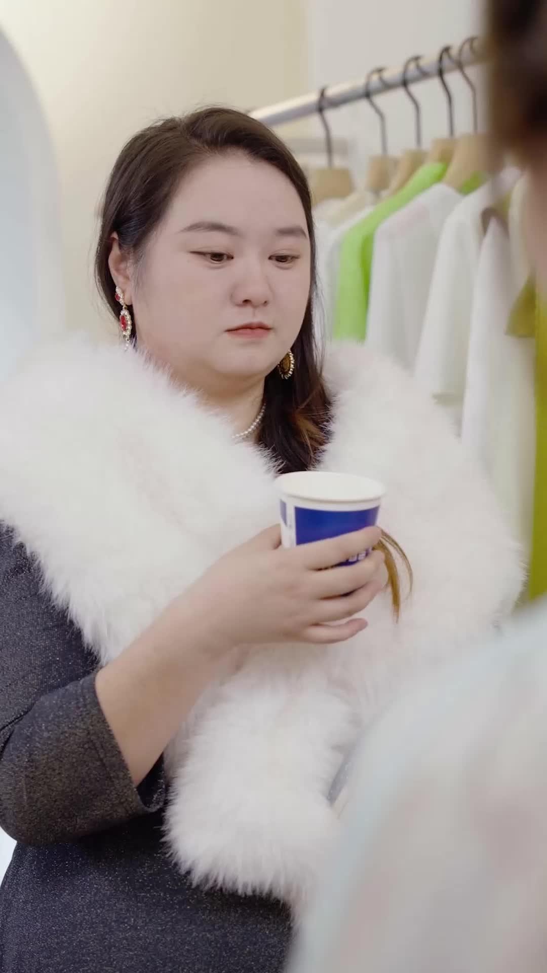 Li Xue enters the frame like a storm front—slow, deliberate, wrapped in white fur that swallows sound. She holds a disposable cup, its blue logo stark against the muted palette of the room. But her grip is too tight, her knuckles pale. She isn’t drinking. She’s bracing. Her earrings—long, ornate, dripping with red gemstones—swing slightly with each step, like pendulums measuring time until rupture. When she speaks, her voice is calm, almost singsong, but her eyes flicker toward Fang Wei’s neck, where the jade beads rest like a verdict. That’s the first clue: this isn’t about fashion. It’s about inheritance. About who gets to wear the symbols of legacy—and who gets erased from the story they represent.