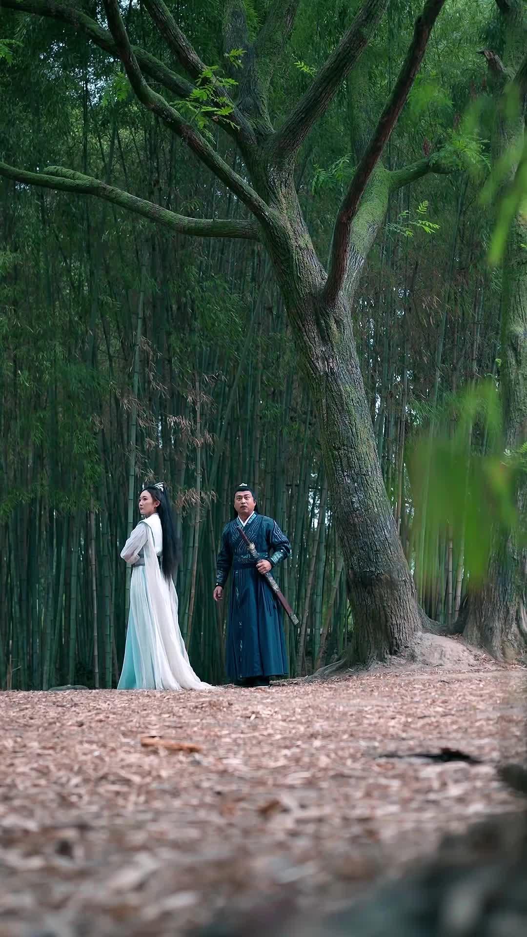 In *The Duel Against My Lover*, every glance between Yunxiao and Lingfeng speaks louder than dialogue—her tension, his guarded calm. That hidden observer behind the pine? Pure narrative tease. The bamboo forest isn’t just backdrop; it’s a witness to unspoken betrayal. 🌿⚔️ #ShortFilmMagic