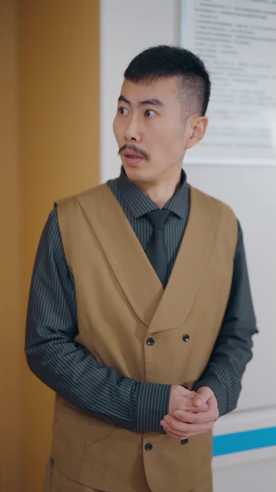 Let’s talk about the kind of scene that doesn’t need dialogue to scream tension—just two men standing in a hospital corridor, one in a tan double-breasted vest with a mustache sharp enough to cut paper, the other in a deep emerald suit that looks like it was tailored for someone who’s used to being watched. This isn’t just a hallway; it’s a pressure chamber. The lighting is clinical but soft, the walls lined with laminated notices and emergency exit signs glowing green like silent judges. Every footstep echoes—not because the floor is hollow, but because the silence between them is so thick you could slice it with a scalpel. The man in the vest—let’s call him Mr. Chen, based on his posture and the way he gestures like he’s rehearsing a courtroom speech—doesn’t just point; he *accuses* with his index finger, jaw clenched, eyes wide not with fear, but with the kind of indignation that only comes when you believe you’re morally right and everyone else is willfully blind. His hands move like pistons, each motion calibrated to emphasize a grievance he’s been holding since breakfast. Meanwhile, the younger man in the emerald suit—Li Wei, if we’re going by the subtle confidence in his stance—stands with his hands buried in his pockets, as if trying to physically suppress the urge to react. He blinks slowly, lips parting just enough to let out a breath that’s half-sigh, half-defiance. When he finally speaks, his voice is low, almost conversational, but there’s steel underneath it—the kind that doesn’t shout, it *settles*. And then, the camera cuts to a nurse in a white coat, mask pulled down just enough to reveal eyes that flicker with recognition, maybe even concern. She’s not part of the argument, yet she’s the first witness to something shifting. That’s the genius of *The Unlikely Chef*: it treats every background character like they’re holding a secret chapter of the story. The hallway isn’t neutral—it’s complicit. The blue trim along the wall? It matches the color of Li Wei’s tie, a visual echo that suggests he’s been here before, maybe too often. The sign behind Mr. Chen reads ‘Emergency Protocols,’ but the real emergency is emotional, interpersonal, and entirely unspoken. Later, when a third man—glasses, black fleece, visibly trembling—gets dragged into the frame by Mr. Chen’s grip on his shoulder, the dynamic fractures. This new figure, let’s say Xiao Feng, isn’t resisting; he’s *performing* resistance, arms flailing in exaggerated panic, voice cracking mid-sentence like a teenager caught sneaking out. But watch his eyes—they dart toward Li Wei, not with fear, but with a plea. A silent transaction. Li Wei doesn’t move at first. He watches. Then, slowly, he lifts one hand—not to intervene, but to *count*. One finger. Two. Three. As if giving Xiao Feng time to choose his next lie. That’s when the shift happens: Li Wei’s expression softens, just for a millisecond, and he smiles—not kindly, not cruelly, but with the quiet amusement of someone who’s seen this script play out before. The smile doesn’t reach his eyes, though. His eyes stay cold, assessing. Because in *The Unlikely Chef*, smiles are weapons, and silence is the loudest line delivery. The scene ends not with resolution, but with movement: Li Wei turns, walks away, and Mr. Chen hesitates—just long enough to betray that he wasn’t sure what would happen next. That hesitation? That’s the crack where the whole story pours in. Later, in the car, Li Wei slumps back, exhaling like he’s just finished a marathon he didn’t sign up for. The driver—a quiet man with a scarf draped over his shoulders, eyes fixed on the road but ears clearly tuned to the rearview—glances once, then says nothing. Li Wei closes his eyes. Not tired. Contemplative. The car moves forward, but the weight of the hallway lingers. You realize then: this isn’t just about a dispute. It’s about power disguised as concern, about how easily authority can be worn like a suit, and how quickly it unravels when someone refuses to play the role assigned to them. *The Unlikely Chef* doesn’t tell you who’s right. It makes you wonder why the question even matters. Because in that hallway, truth wasn’t spoken—it was negotiated in glances, in the angle of a shoulder, in the way Xiao Feng’s knuckles whitened when Mr. Chen tightened his grip. And when they step outside later, into the orange-lit courtyard where a chef in a striped apron waits—yes, *a chef*, in full whites, pocket flag stitched with yellow and green like a tiny national emblem—you understand: this isn’t a hospital drama. It’s a culinary thriller wearing a medical mask. The chef isn’t there to serve food. He’s there to serve *consequences*. His expression shifts from polite confusion to dawning realization as Li Wei approaches, and the way he tilts his head—just slightly—suggests he knows more than he’s saying. That’s the signature of *The Unlikely Chef*: every character holds a recipe card they haven’t shared yet. The vest, the emerald suit, the fleece, the apron—they’re not costumes. They’re ingredients. And the kitchen? It’s still waiting.