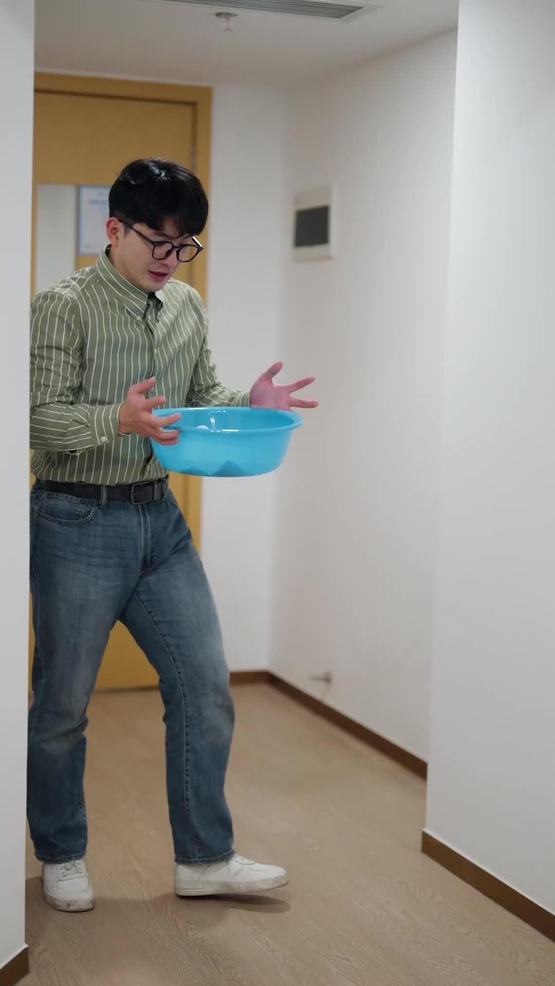Let’s talk about the blue basin. Not the kind you’d find in a kitchen sink or a laundry room—but the one Kai carries like a shield, like a confession, like a last resort. In the opening frames of The Unlikely Chef, that basin isn’t just plastic. It’s a narrative device, a visual metaphor wrapped in cheap polymer. Kai walks down the hospital corridor, shoulders squared, chin up, but his eyes dart sideways—checking for witnesses, for judgment, for escape routes. He’s not entering a room. He’s stepping onto a stage. And the audience? Mr. Lin, seated in his wheelchair, looking less like a patient and more like a judge presiding over a trial no one asked for.