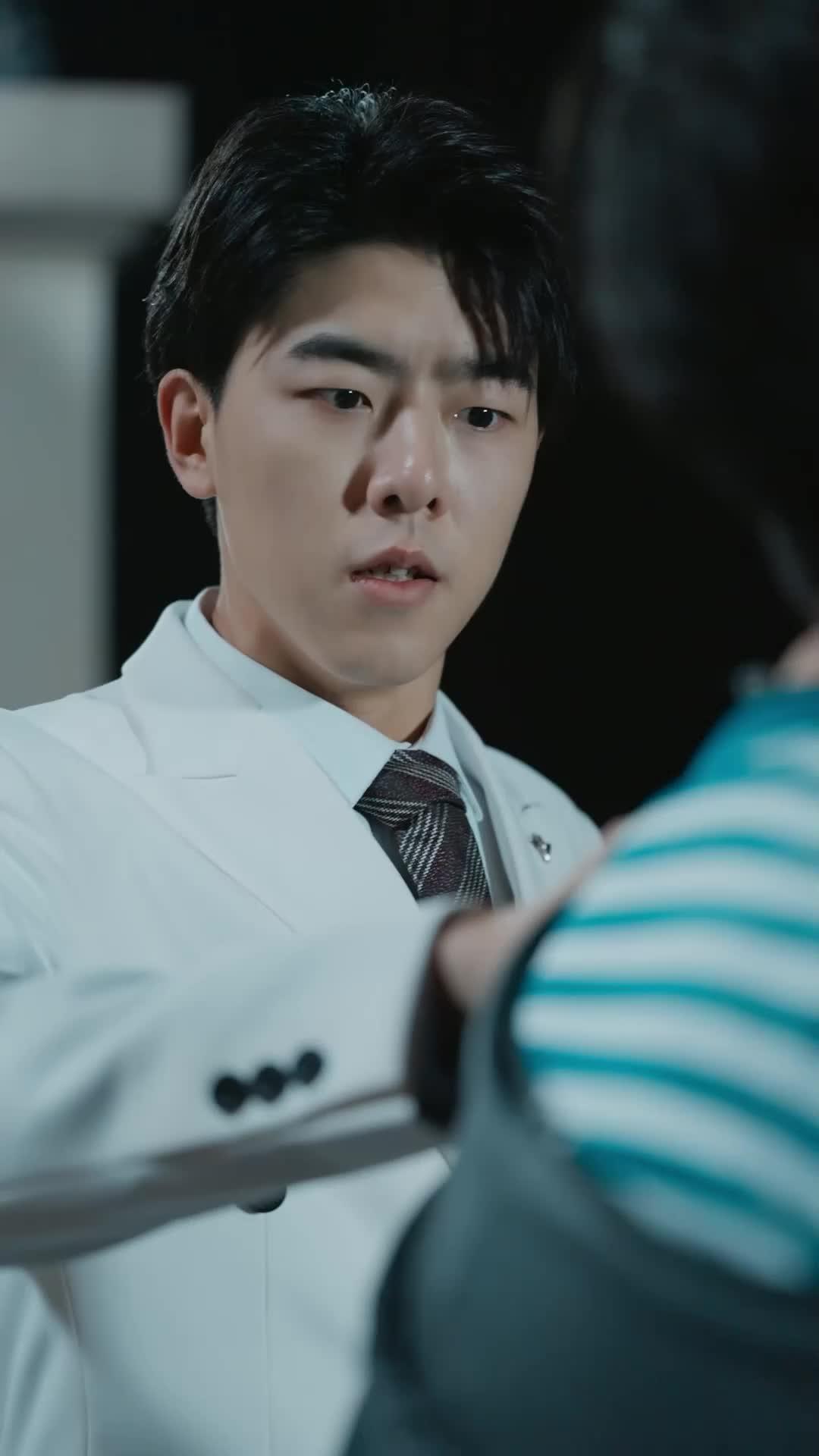 Let’s talk about the spoon. Not just any spoon—the tiny, tarnished, gold-plated ladle that Chen Xiao pulls from his jacket like a confession. In the dim, cinematic noir of that rooftop confrontation, it’s easy to mistake the scene for another clichéd showdown: the polished heir versus the scrappy outsider, tension coiled like a spring ready to snap. But *The Unlikely Chef* has other plans. From the very first frame, the lighting tells us this isn’t about power—it’s about proximity. The shallow depth of field blurs the city behind them, isolating Li Zeyu and Chen Xiao in a bubble of emotional gravity. Li Zeyu’s white suit isn’t flashy; it’s clinical, almost surgical—like he’s prepared to dissect the situation, not dominate it. His fingers twitch near his lapel pin, a silver bee, a detail that will matter later. Chen Xiao, meanwhile, is all texture: the soft fleece of his hoodie, the frayed edge of his drawstring, the way his glasses fog slightly when he speaks too fast. He doesn’t look like a threat. He looks like someone who’s been rehearsing this moment for years, and still isn’t ready.
