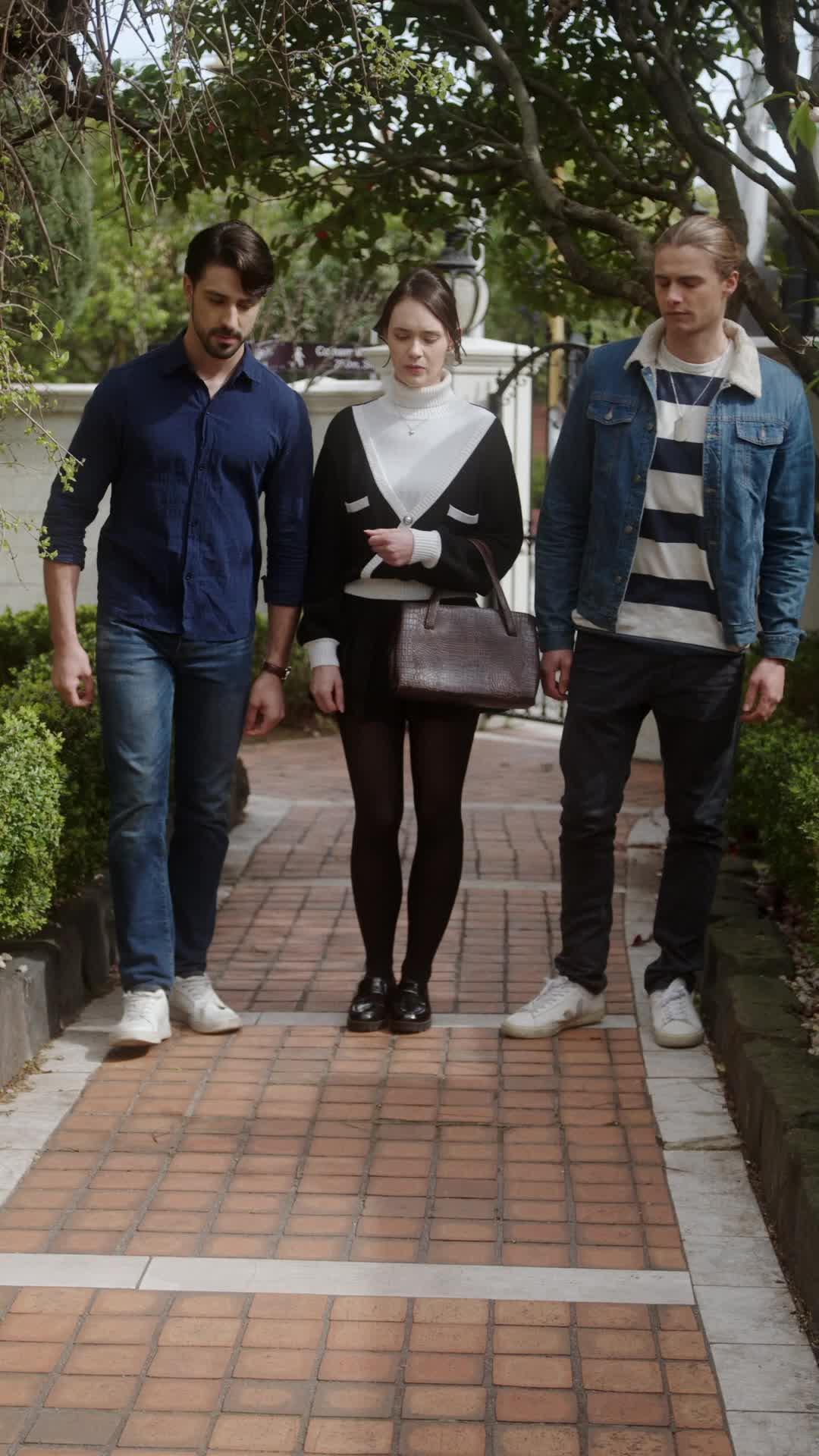 Three people, one brick path—tension thick as fog. When the crew member bursts through like a plot twist, it’s not chaos; it’s catharsis. Light My Fire nails how grief hides in plain sight, and love wears a cardigan. 💔🔥 #EmotionalWhiplash