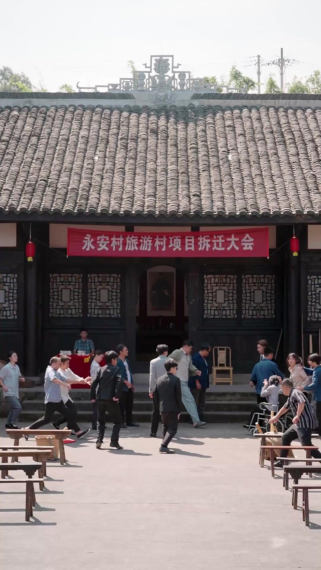 The courtyard of the old ancestral hall wasn’t just a setting in *Threads of Reunion*—it was a living organism, breathing in the scent of aged wood, damp stone, and collective anxiety. The red banner above the entrance, declaring ‘Yong’an Village Tourism Project Relocation Meeting’, hung like an ironic punchline, its bold characters mocking the chaos unfolding beneath it. This wasn’t bureaucracy. This was theater stripped bare, where every gesture, every sob, every clenched fist carried the weight of generations compressed into ten minutes of raw, unfiltered human drama. And at its heart stood three figures whose contradictions defined the entire piece: Li Wei, Zhao Daqiang, and Wang Lihua—each a vessel for a different kind of truth, none of them entirely honest, all of them devastatingly real.
