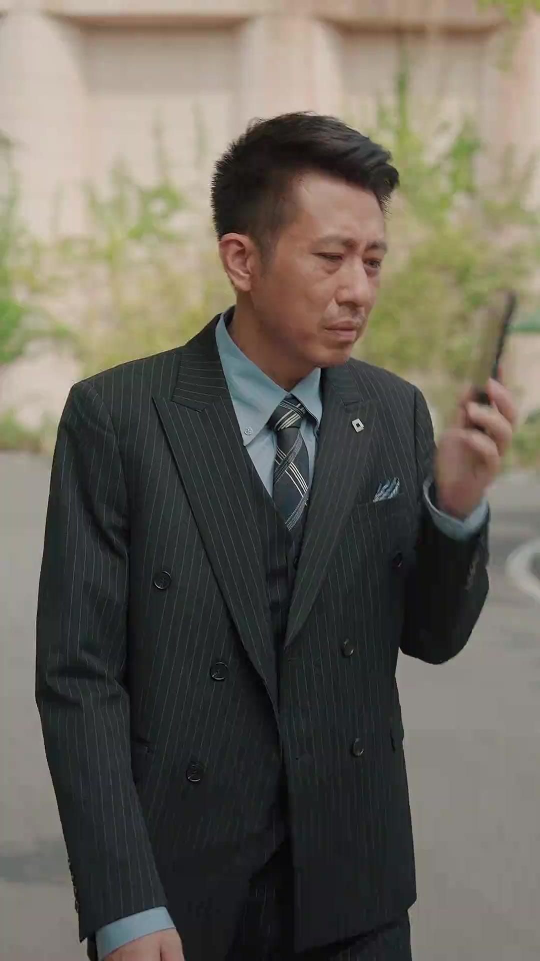 Let’s talk about the kind of cinematic whiplash that only a well-crafted short drama can deliver—where a man in a pinstripe suit walks down a quiet residential street, phone in hand, eyes scanning like he’s rehearsing a speech in his head. That man is Lin Zhi, impeccably dressed in charcoal double-breasted tailoring, light blue shirt, diagonally striped tie, pocket square folded with geometric precision. He looks like he’s about to close a merger or deliver a eulogy—not get ambushed by a bucket of water from offscreen. But that’s exactly what happens. A sudden splash, slow-motion droplets catching sunlight, his face contorting mid-reaction as water streams down his temples, soaking his lapels, turning his polished ensemble into a glossy, dripping mess. He wipes his eyes, still clutching the phone—somehow, even drenched, he doesn’t drop it. That tells you everything: this isn’t just about the suit; it’s about control. And control, in Through the Storm, is always temporary.
