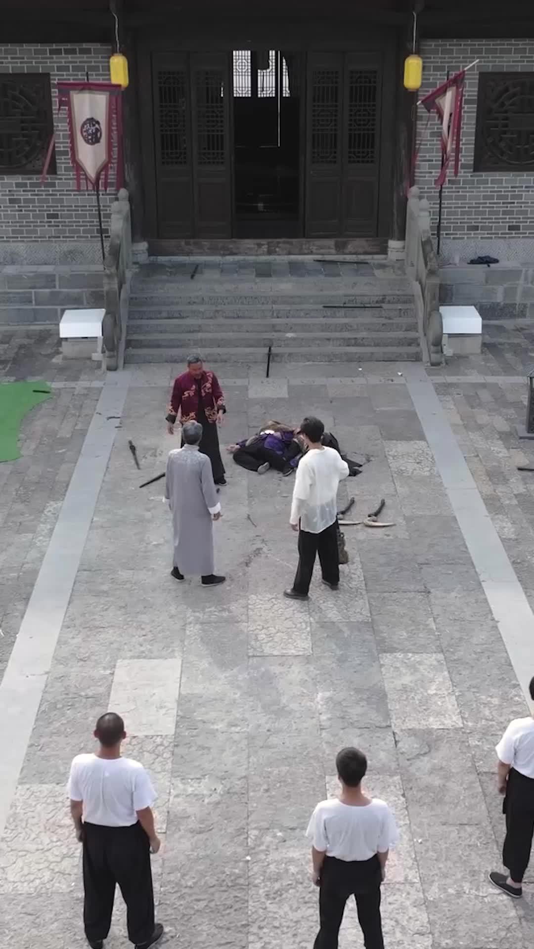 Elder Wei stands apart, not physically, but spiritually. He doesn’t intervene. He doesn’t advise. He simply *observes*, his hands clasped behind his back, his posture that of a man who has long since accepted that some fires cannot be extinguished—only redirected. When Master Lin laughs—a harsh, brittle sound that echoes off the temple walls—Elder Wei doesn’t react. But his eyes flick to the fallen figure on the ground. Not with pity. With assessment. He’s calculating risk, consequence, the ripple effect of one decision made in haste. He knows Jian better than Jian knows himself. He saw him as a boy, kneeling before the anvil, hammer in hand, tears mixing with soot on his cheeks. He knows the weight of that sword isn’t in its mass, but in the years it took to earn the right to carry it. And he knows Master Lin is pushing Jian toward a choice no young man should have to make: defend your honor, or preserve the peace that keeps everyone alive.