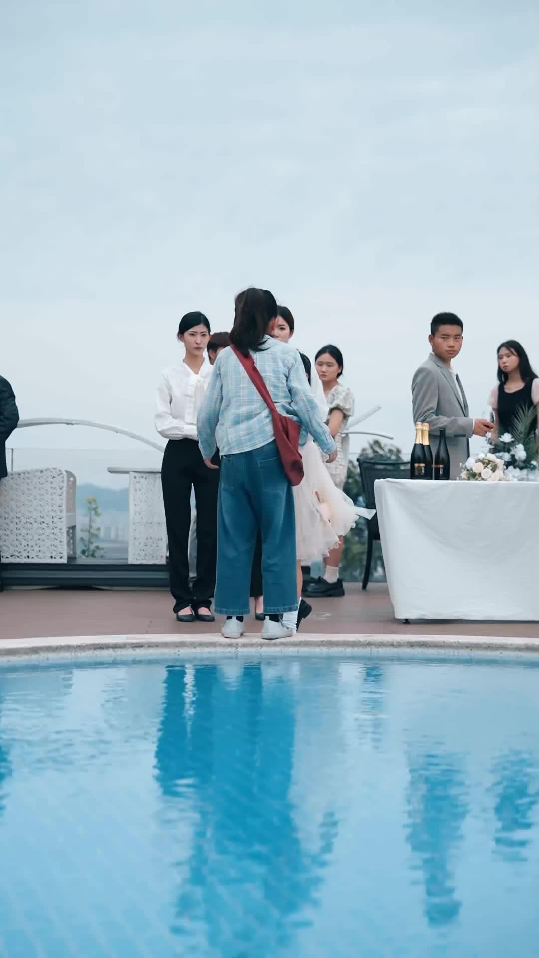 The genius of this sequence lies in its refusal to explain. We’re not told *why* the girl fell. Was it an accident? A cry for help? A deliberate act to expose something hidden? The film doesn’t care. What matters is how the fall fractures the surface of performance. These people aren’t just guests at a party—they’re actors in a long-running drama where the script changes every time someone gets wet. The pool isn’t water. It’s truth. And once you’re submerged, there’s no drying off completely.